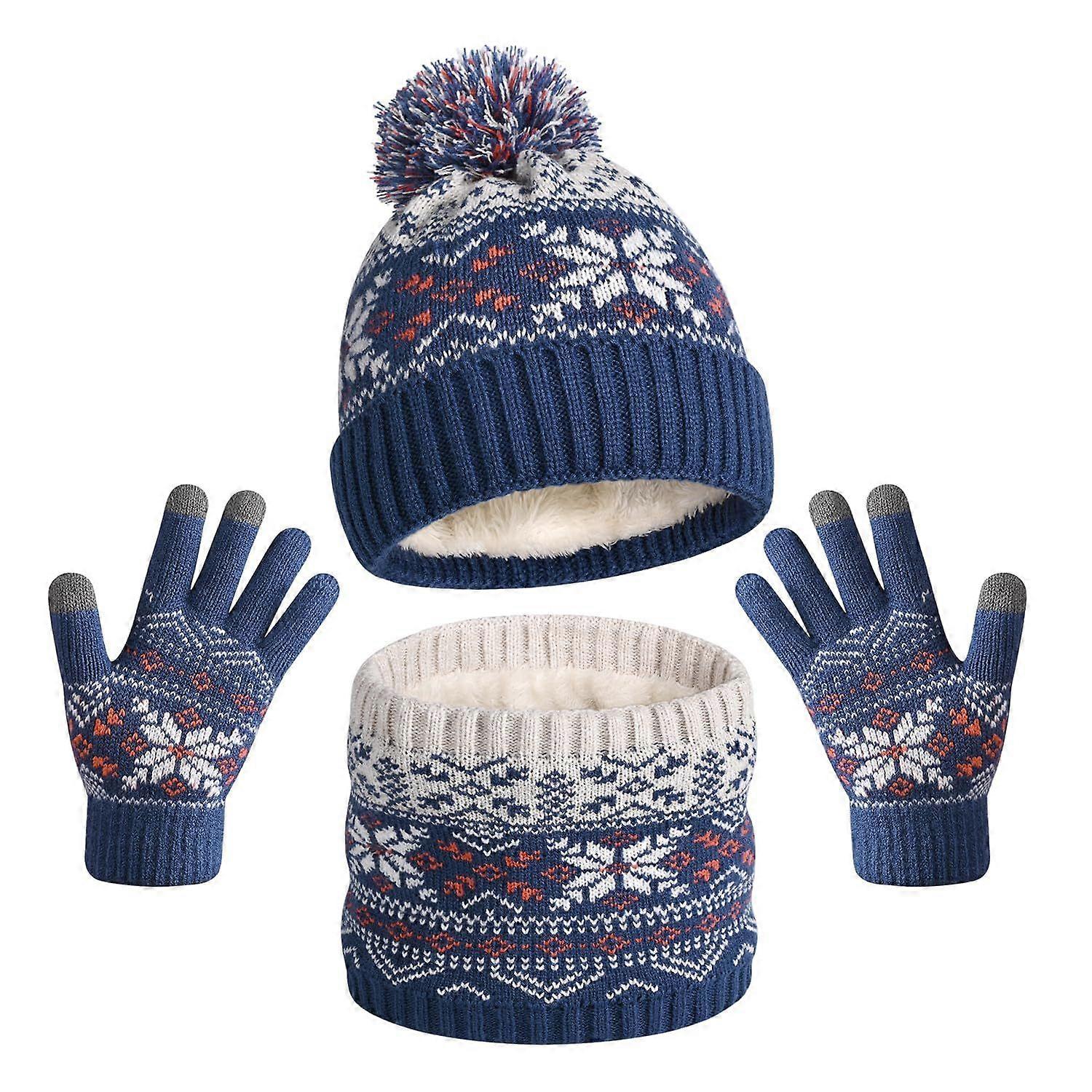 Kids Knit Beanie Scarf Gloves Set, Fleece Lined Pompom Winter Accessories for Toddler Girls Boys, Cold Weather Outdoor Play Gear