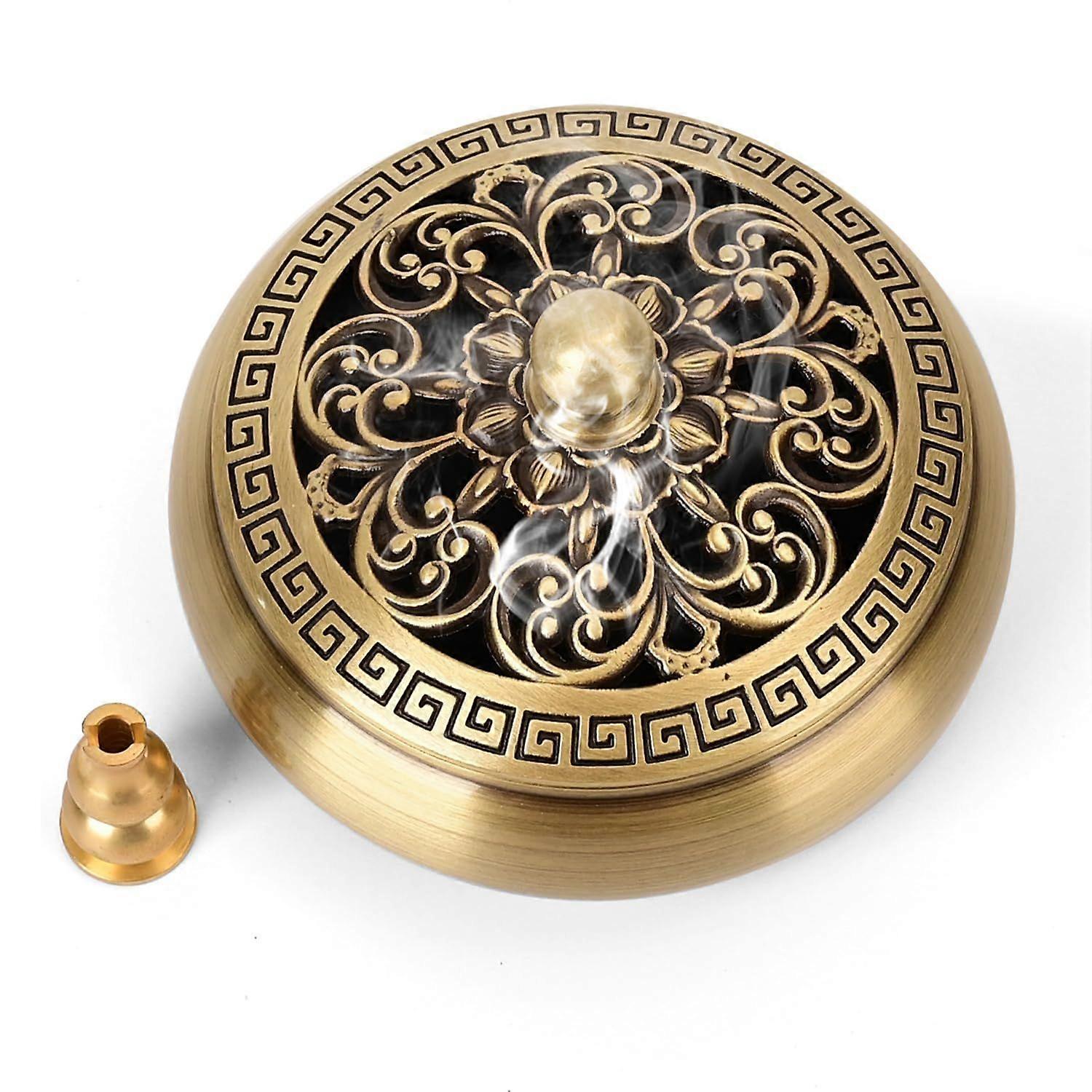 Brass Copper Incense Burner with Stick Holder, Cone CoIl Stand with Fireproof Cotton Pad, Meditation Yoga Spa Home Office Decor