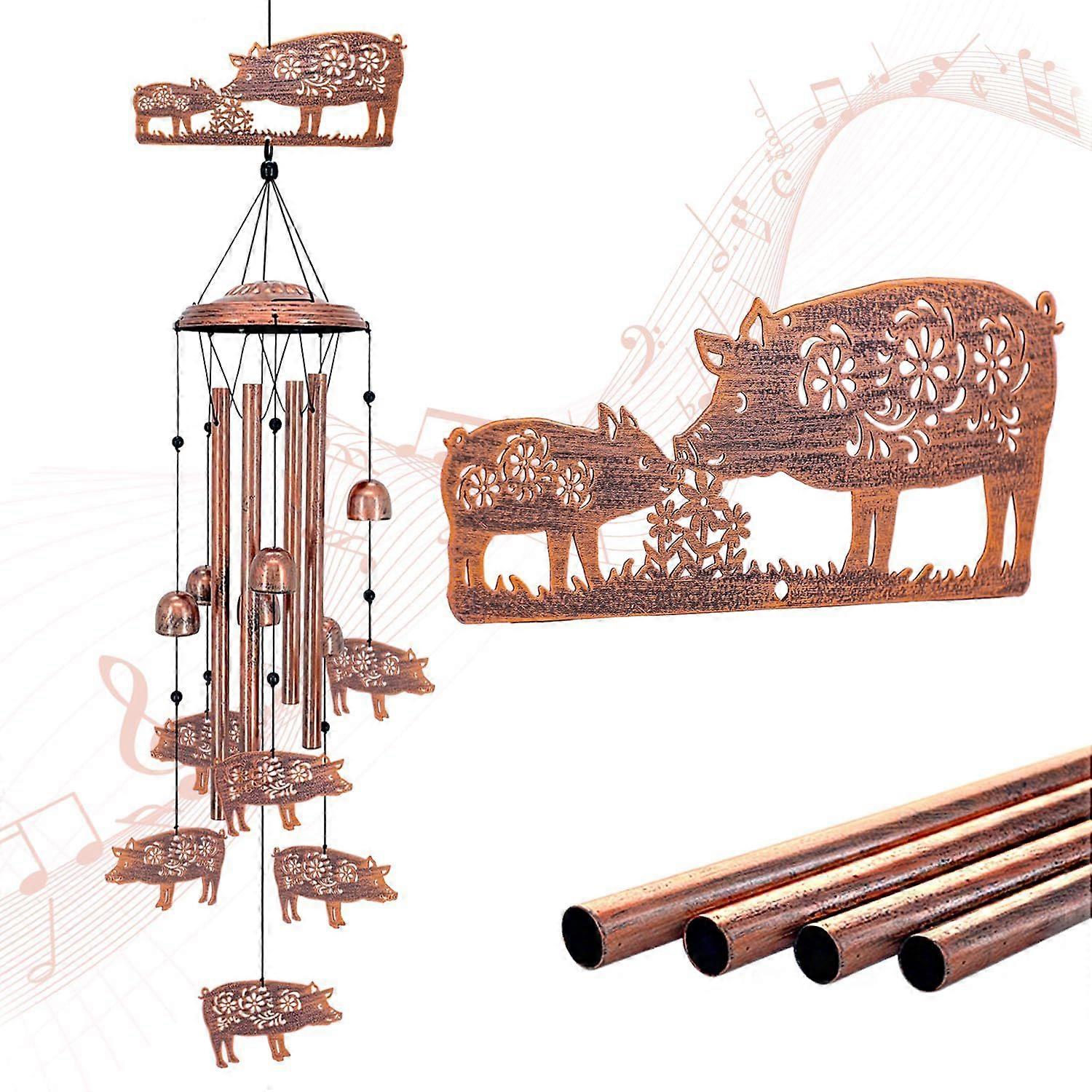 Metal Pig Wind Chimes, Outdoor/Indoor Hanging Decor for Garden & Yard, Thoughtful Memorial/Housewarming/Birthday Gift for All Occasions