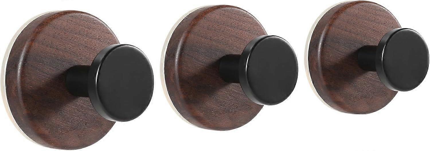 Walnut Suction Cup Hooks, Waterproof No Drill Hooks for Bathroom and Kitchen, Natural Wood Hangers for Towels Robes on Tile gIass Door (3-Pack)