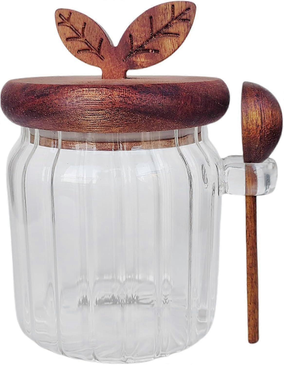 Sugar Bowl with Lid and Spoon, 400ml gIass Coffee Canister for Airtight Food Storage on Kitchen Countertop, Brown Sugar and Spice Container for Coffee