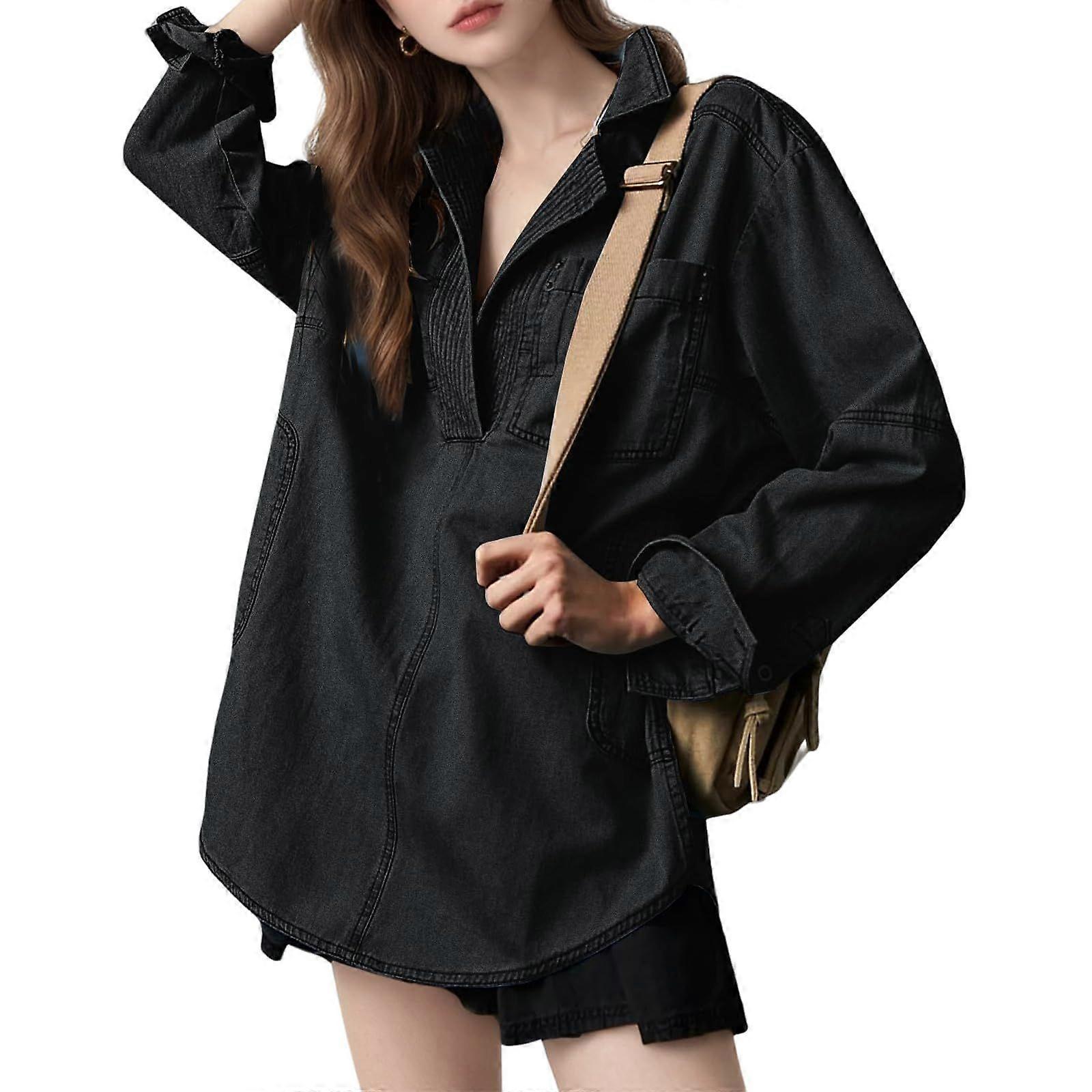 Denim Shirt Jacket, Women's Button Down Pullover Top for Casual Retro Outfits and Daily Wear