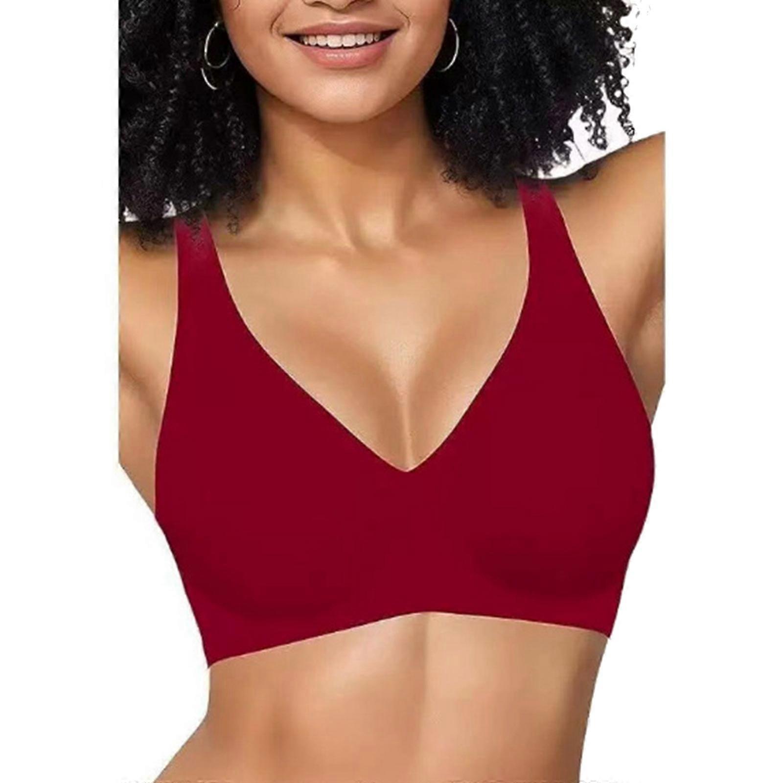 Breathable Wire Free Full Coverage Bra Invisible Design Deep V Neck Adjustable Straps Bralette Push Up Bustier For Women Burgundy XL