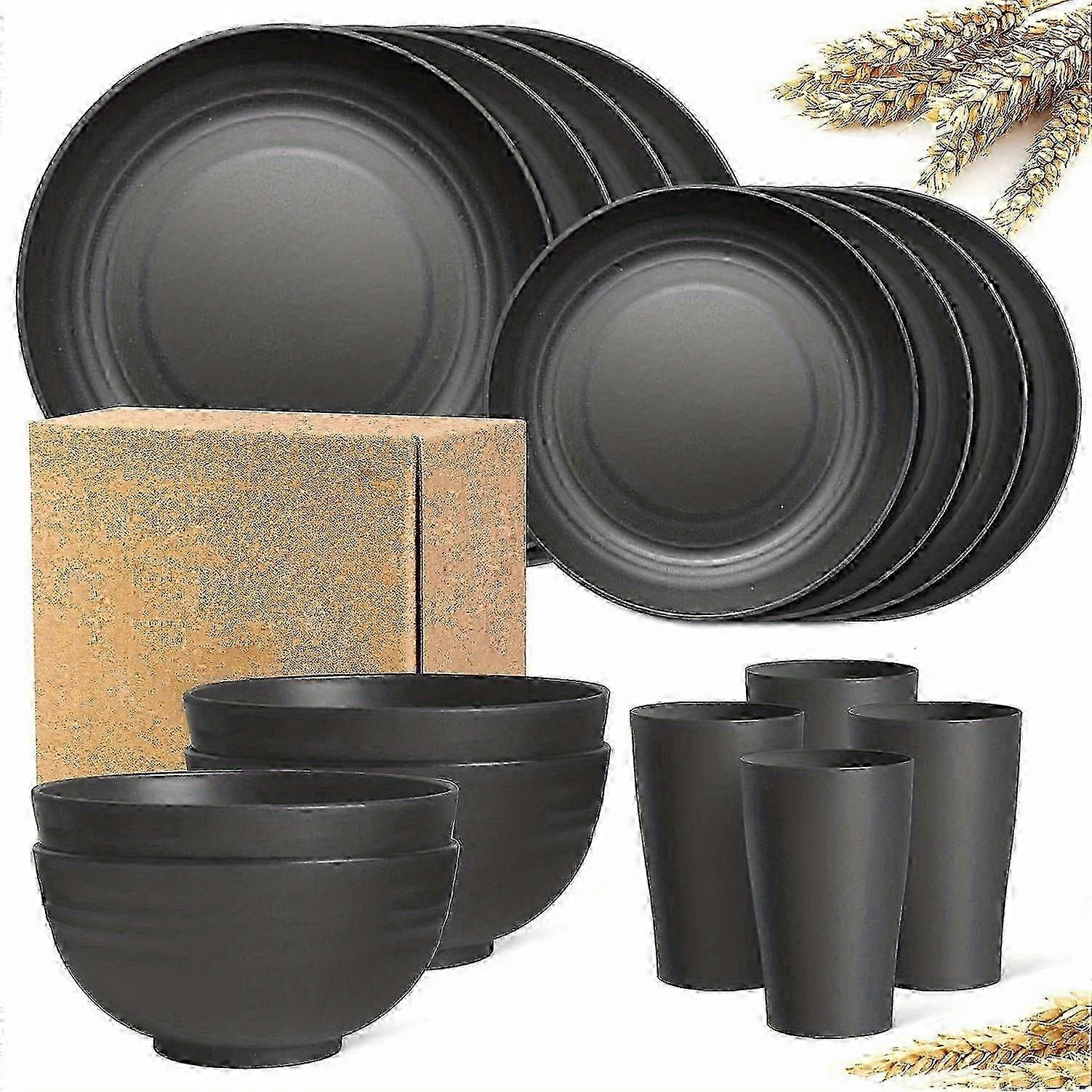 16pcs Unbreakable Wheat Straw Dinnerware Sets, Reusable Tableware Set, Lightweight Microwave Dishwasher Safe, Plates, Cups, Bowls For Rv Cam