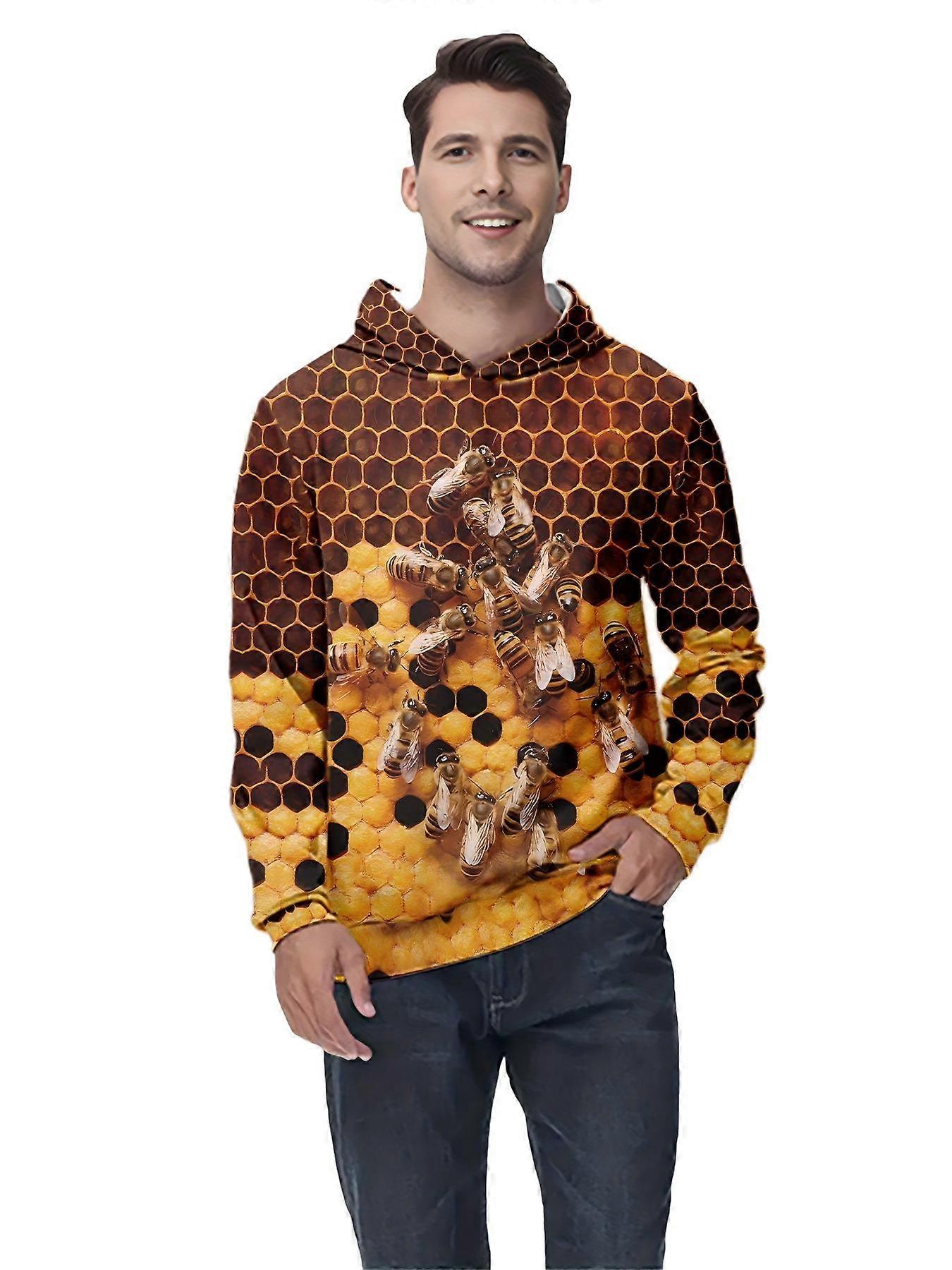 Men’s Nature Graphic Hoodie Honeycomb And Bees Print Casual Streetwear Pullover