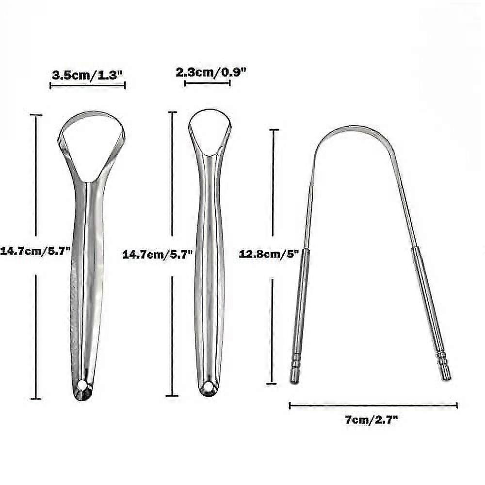 Tongue Scraper 3 Pack Reduce Bad Breath Stainless Steel Cleaners 100% BPA Free Metal