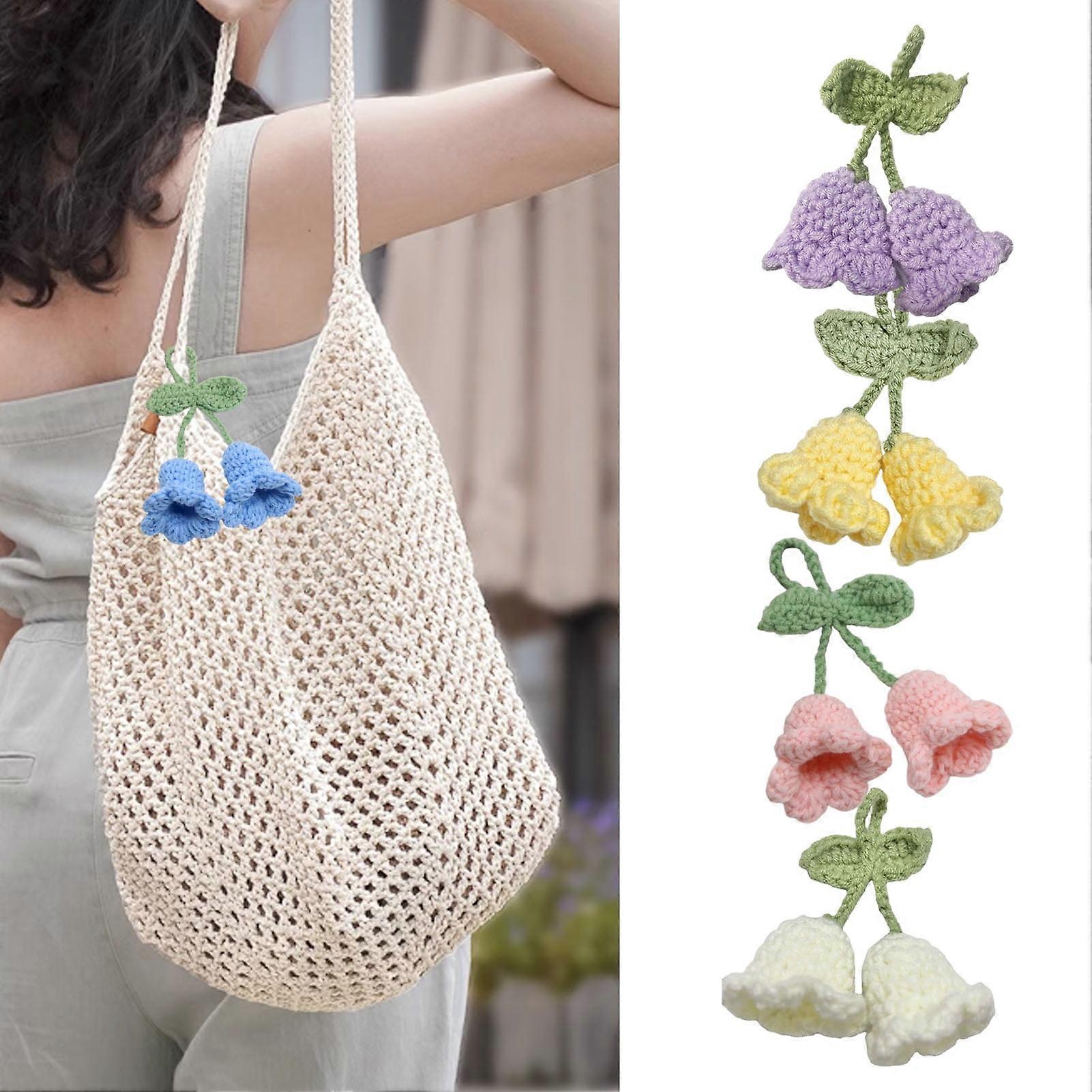 Handmade Flower Knitted Keychain Women Crocheted Wool Flower Leaf Bag Pendants Car Key Ring