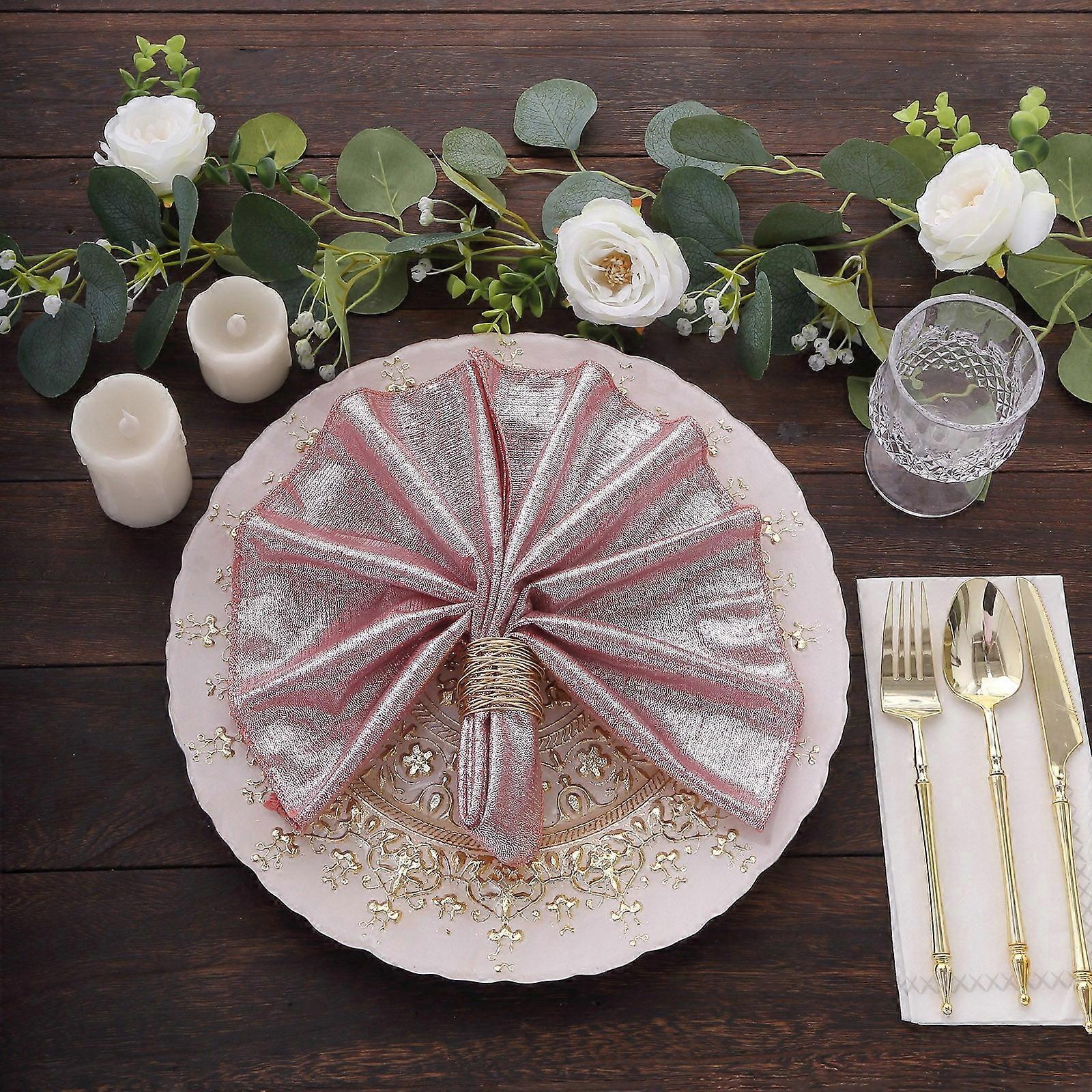 5 Pack Rose Gold Shimmer Sequin Dots Polyester Dinner Napkins, Reusable Sparkle Glitter Cloth Table Napkins - 20"x20"