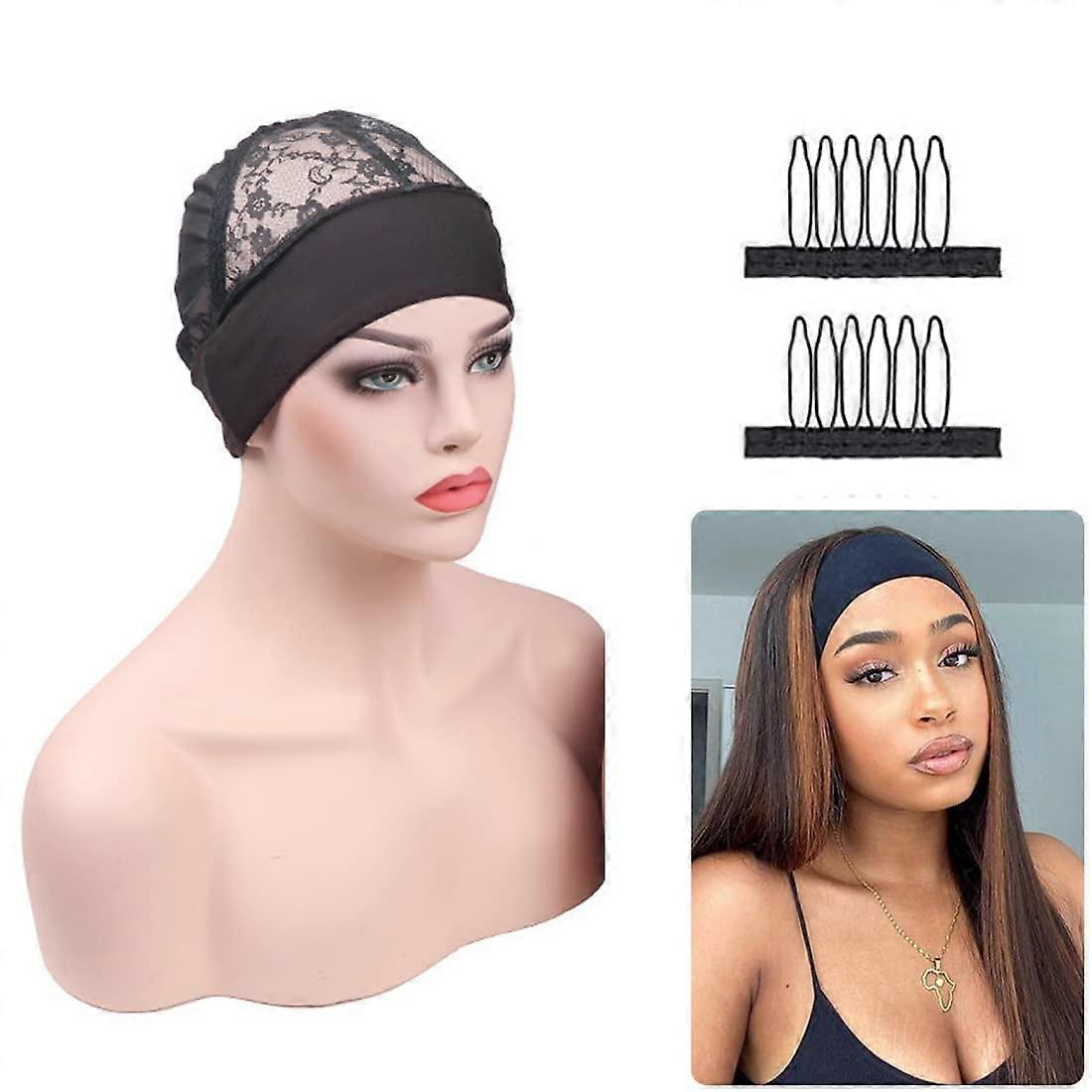 Headband Wig Caps, Wig Grip Cap for Wigs Making Headwrap Cap for Women Making Wigs with Adjustable Wig Grip (2pcs)