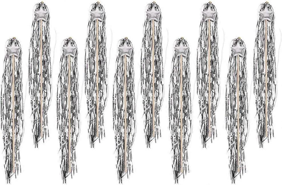 10pcs Star Shape Ribbon Wands Glitter Tinsel Fairy Magic Ribbon Wands Sticks Wedding Photo Prop - Silver