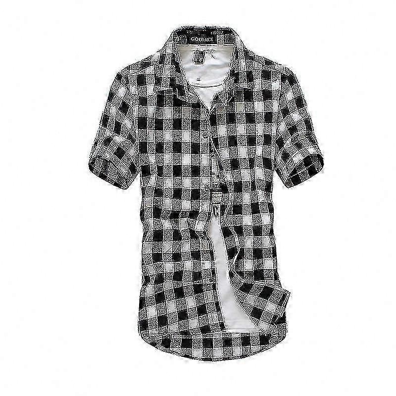 Men's Casual Short Sleeve Shirt in Check Pattern Soft Brushed Cotton Top Blouse
