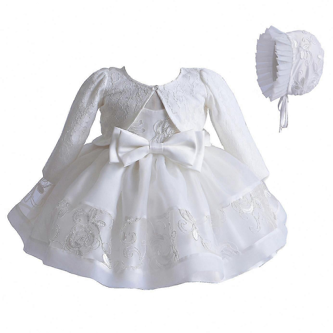 Ivory Lace Ceremony Dress with Bonnet and Jacket for Baby Girls