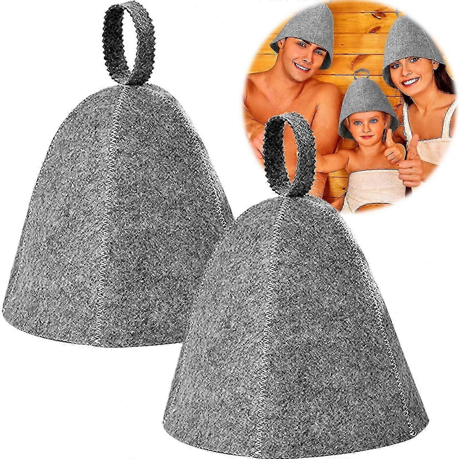 High-quality materials: The sauna hat is made of felt fabric, which is lightweight, breathable, durable, quick-drying, soft, and comfortable for repeated use. Protect your head: A sauna hat helps protect your head, scalp, hair, and ears from high temperatures during sauna use. Perfect gift: This well-crafted sauna hat features refined details and a long service life. The grey design is suitable for both men and women. Portable and easy to use: The sauna hat is foldable without losing its shape and includes a small eyelet for convenient hanging. What you get: The package includes two sauna hats, designed to fit most head sizes and offer practical versatility.
