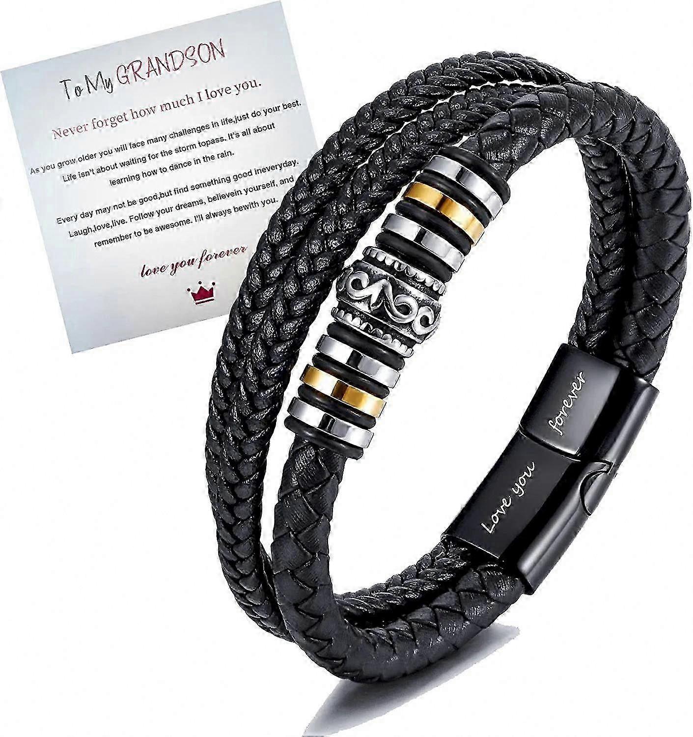 To My Grandson Bracelet – Engraved with “Love You Forever,” this braided leather bracelet is a heartfelt gift from grandma or grandpa. To My Son Bracelet – Featuring the message “I Will Always Be With You,” this braided leather bracelet expresses enduring parental love. Express Love Forever Bracelet – A meaningful wristband symbolizing deep, lasting affection. Inspirational bracelet designed to encourage confidence and personal pride. Men’s Braided Leather Bracelet – Made from high-quality PU leather and stainless steel, featuring a secure magnetic clasp. Handwoven for comfort and style. Adjustable wristband bracelet with a vintage, classic design—ideal for men to wear with any outfit. Suitable for husband, boyfriend, father, or male friends as a thoughtful gift for Valentine’s Day, Christmas, birthdays, Thanksgiving, or other special occasions.