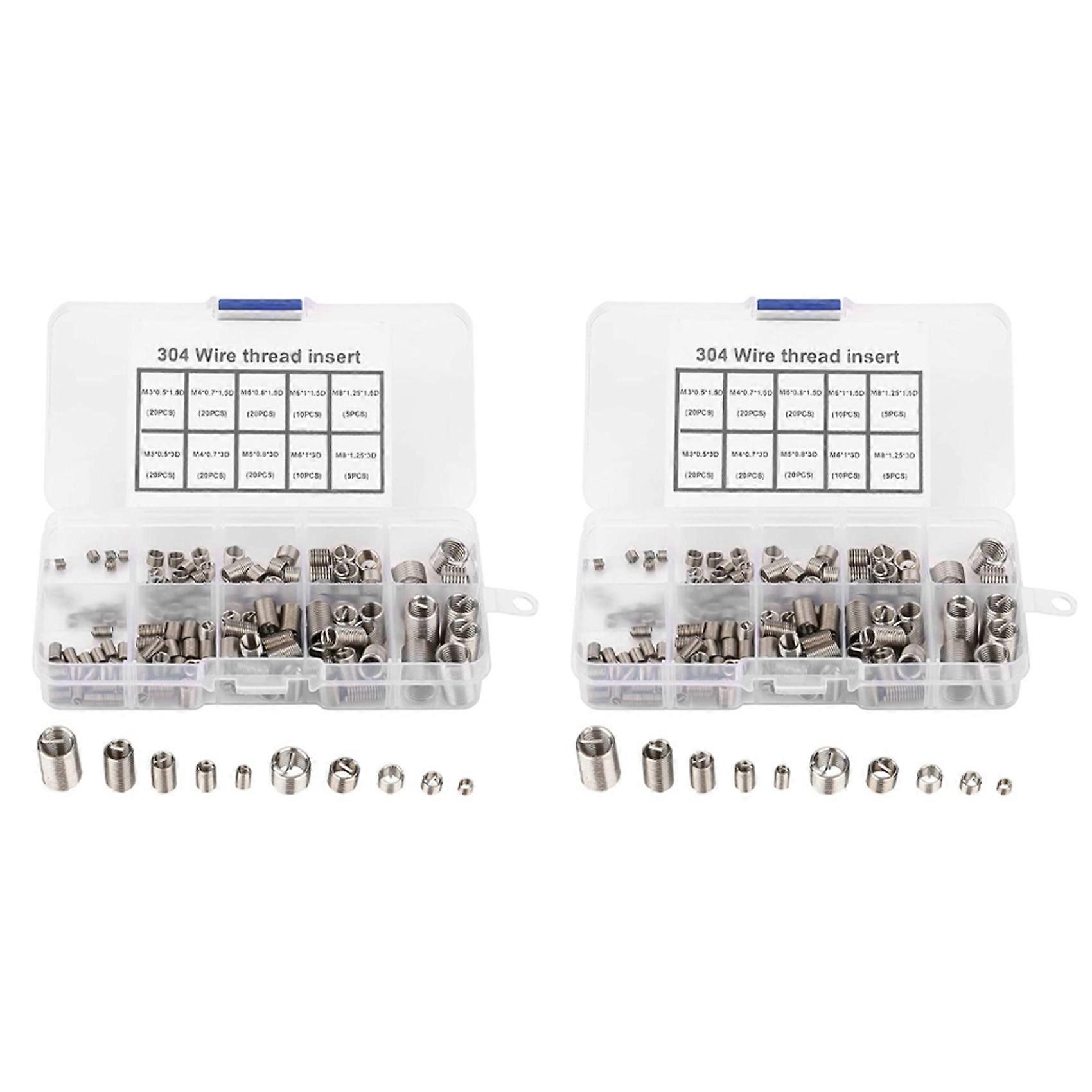 APPLIED FOR THREAD INSERTS CONNECTION AND REDUCES THREAD INSERTS DAMAGE--Steel thread inserts used in low strength materials such as aluminum, magnesium, can avoid thread damage and get a good connection performance, to enhance connection strength and improve connection condition perfect TOOL FOR SCREW THREAD REMOVING--Used for parts that requires frequent removing, it can greatly improve service life and wear-resistance of screw thread STRONG ELASTICITY INCREASES SCREW THREAD CONNECTION AND REDUCES FATIGUE RESIST--Because of a certain elasticity, thread insert can even the load distribution on each thread, eliminate pitch and tooth deviation between screw and screw hole, and absorb vibration, thus increasing the screw thread connection strength and fatigue resistance ANTI-LOOSE FITS FOR HIGH COEFFICIENT INSURANCE--It can prevent screw from getting loose, especially used for products requiring high coefficient of insurance EASY TO OPERATE AND MAINTENANCE--Easy to maintenance, install a thread insert into a damage screw hole, then the screw hole can be used as normal, in order to avoid workpiece loss Colour: silver Material: stainless steel Package Contents: 40 x M3 x 0.5 x 1.5D thread insert 40 x M4 x 0.7 x 1.5D thread insert 40 x M5 x 0.8 x 1.5D thread insert 20 x M6 x 1 x 1.5D thread insert 10 x M8 x 1.25 x 1.5D thread insert 40 x M3 x 0.5D x 3D thread insert 40 x M4 x 0.7 x 3D thread insert 40 x M5 x 0.8 x 3D thread insert 20 x M6 x 1 x 3D thread insert 10 x M8 x 1.25 x 3D thread insert Only the above package content, other products are not included. Note: Light reflection and different displays may cause the color of the item in the picture a little different from the real thing. The measurement allowed error is +/- 1-3cm.