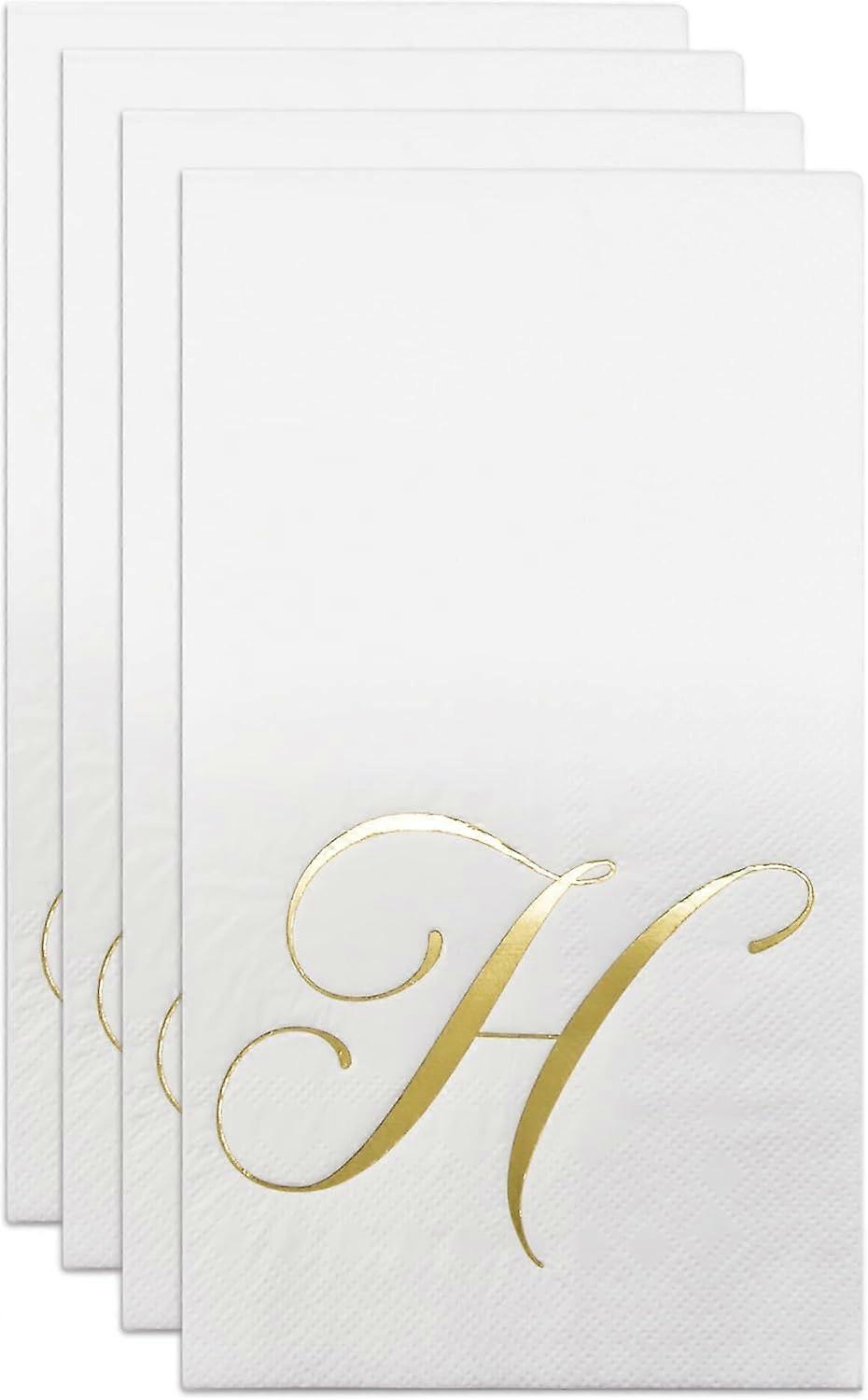 100 Gold Monogram Guest Napkins Letter H Disposable Paper Pack Elegant Metallic Golden Foil Dinner Hand Napkin for Bathroom Powder Room Wedding Holida