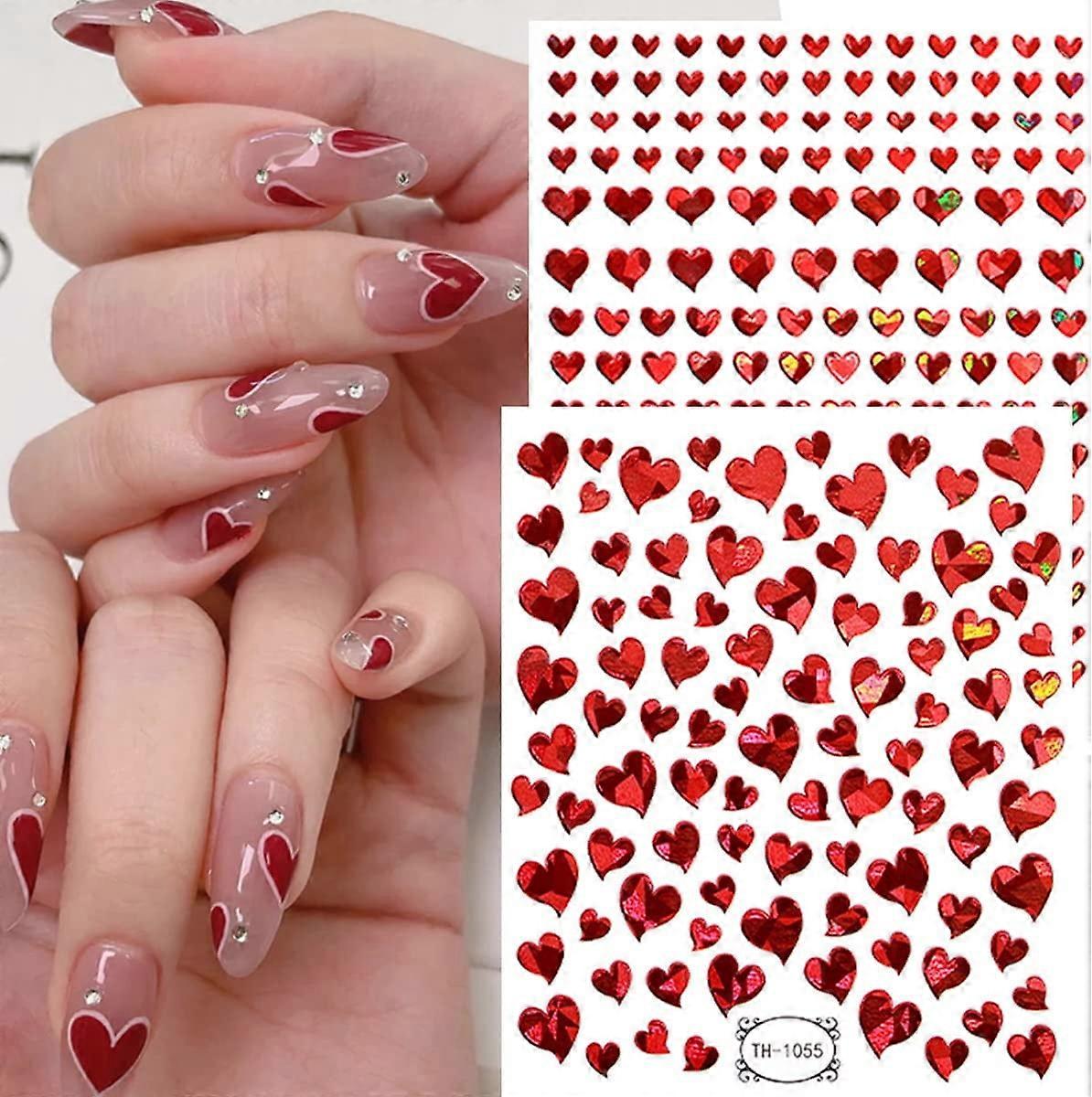 6 Sheets Heart Nail Art Stickers, Valentine's Day Nail Decals 3D Self-Adhesive Nail Art Supplies Blue Red Love Heart Rabbit Nail Designs Sticker for W