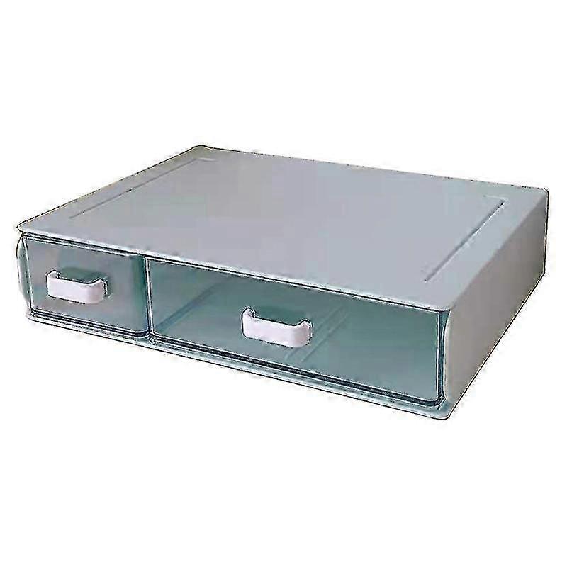 Compact, stackable, drawer-style transparent desktop organizer for storing washi tape, stationery, etc. (Blue, 2 grids)