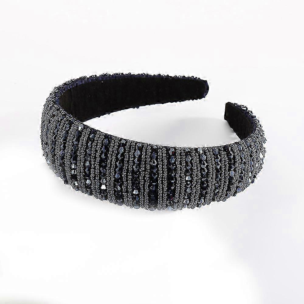 Crystal rhinestone headband, crystal embellished headband, velvet thick wide headband, party wedding headpiece, hair accessory, navy blue