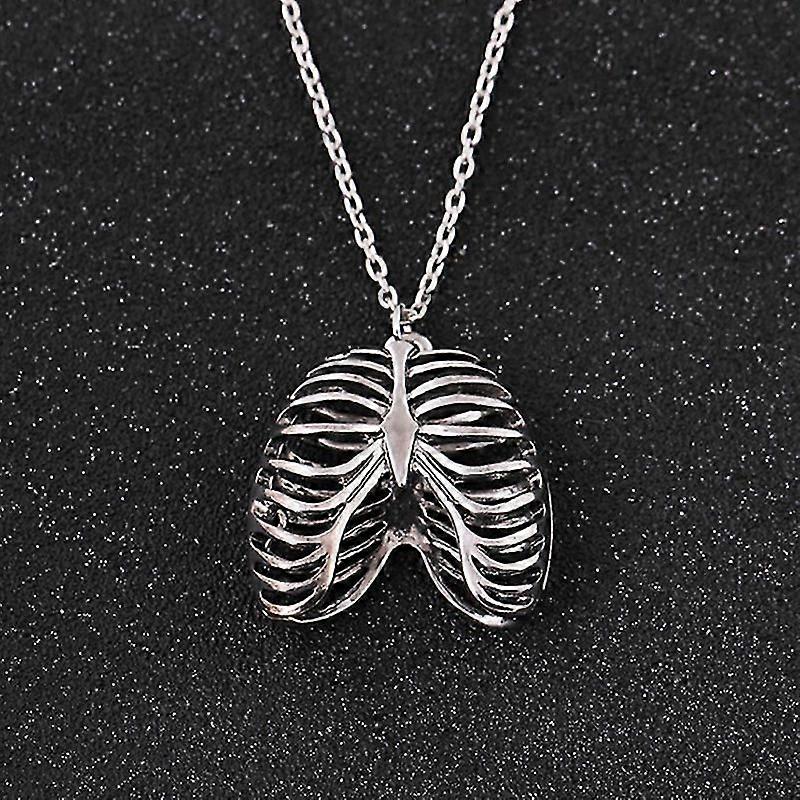 Human Rib Skeleton Pendant Necklace Vintage Jewelry Gifts Fashion Alloy