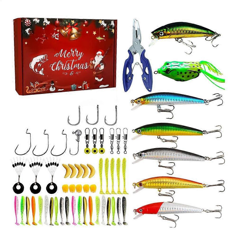 Fish Lure Set Christmas Countdown Calendar 24 Days Christmas Countdown Fishing Lure Lures Bait Kit for Father Christmas Gift Box