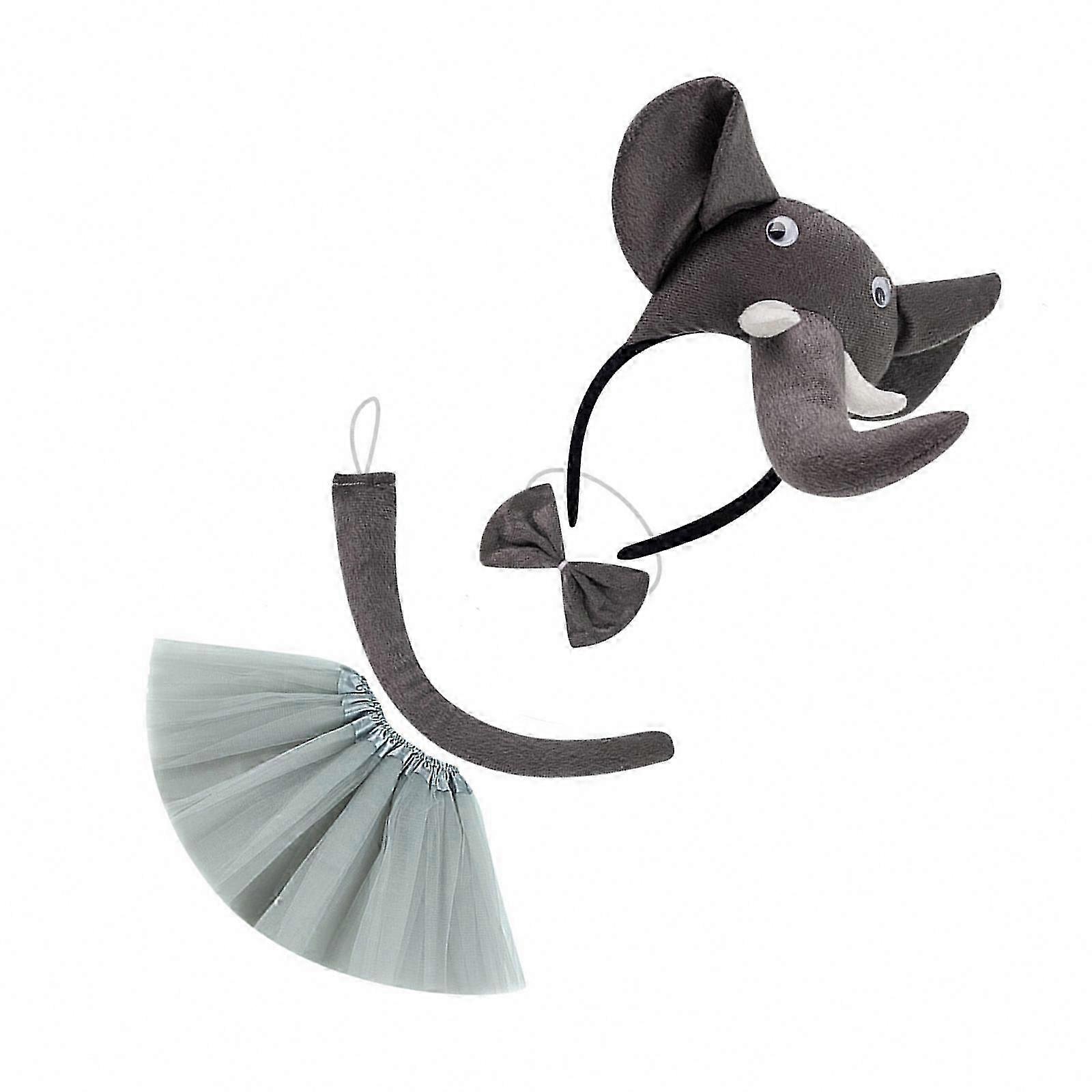 1/3/4/5Pcs Elephant Costume Set with Ears Headband Tail Bowtie Tutu for Halloween Dress Up Party Cosplay