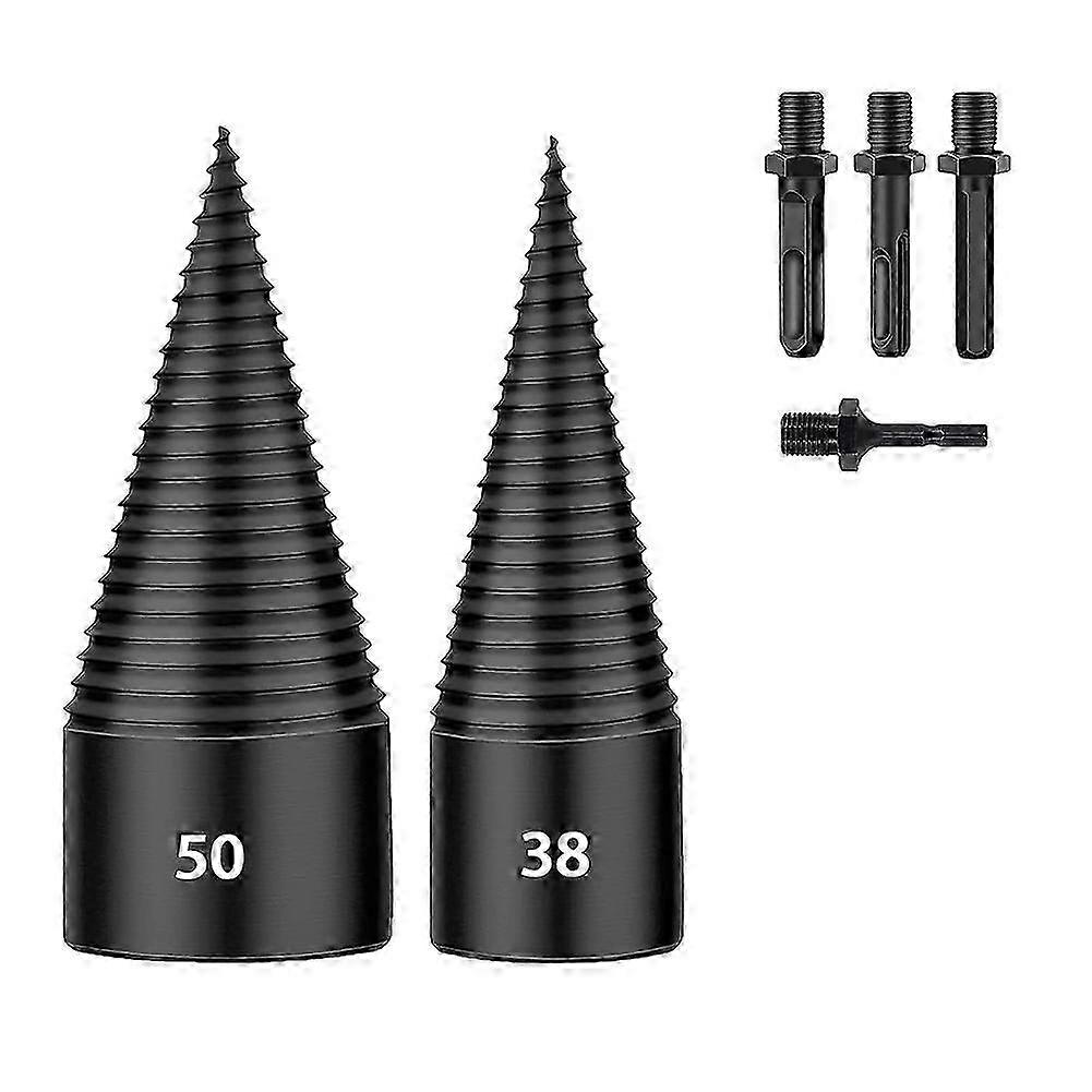6 PCS Firewood Log Splitter, 38mm+50mm Log Splitter Drill Bits, Wood Log Splitter +4 Handles-yt