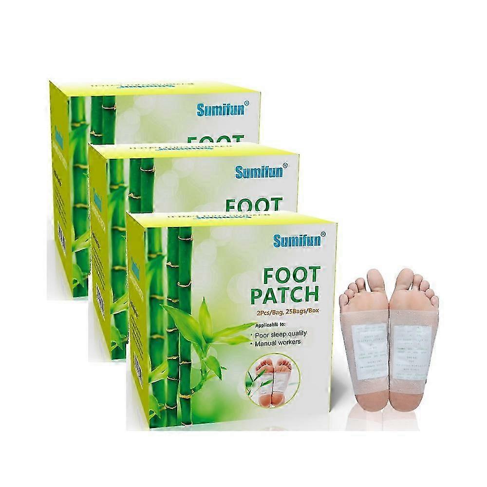Place the patches on the soles a little early before bedtime. The pads warm up themselves to open up the pores to absorb/draw the wastes, toxin, sweat from the lymph system. They help the body cleanse effortlessly while you sleep. Remove the pads the next morning, you will find them turn into black or brown oily gunk. You will experience a restful sleep, a clear mind and increased energy. Continuously using the patches will improve your well-being and health. These foot pads may help you relax after a hard day of work With a small investment, you can now enjoy a healthier, more relaxed body and mindApply to Many Users This foot patch is perfect for people who suffer from sore feet because of standing or walking for a long time during the day, such as teachers, runners, cashiers; people who have trouble falling asleep at night; people who have smelly feet; brain-workers who have stressful job. The package contains 50pcs. Use these bamboo vinegar detoxifying feet patches on a regular basis, you will feel less stressful, well rested, recharged, refreshed and revived the next morning. How to use1. Remove the larger piece from the adhesive sheet and discard. Place the side of the pad that has the wording onto the adhesive plaster.2. Place the Foot Patch onto its center, making sure that the writing on the sachets is facing down toward the adhesive surface.3. Stick and spread firmly onto the sole of your foot. For best results, put them on some time before bedtime, you can wear them around the house if you sleep less than 8 hours.4. Allow 8 to 12 hours for toxins to be fully absorbed from your body before removing the Foot Patches.