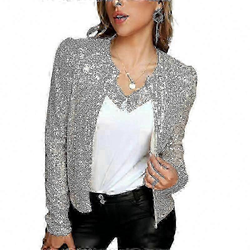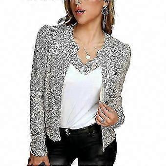 Sequin Blazer Cardigan for Women, Crew Neck Sleeves, Streetwear Fit