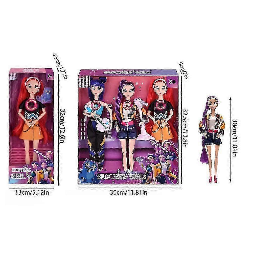 3x Sining Kpop Demon Hunters Girls Doll Toy - Rumi Mira Zoey Comforting Dolls, Birthday Christmas Gift for Kids Fans-maodu