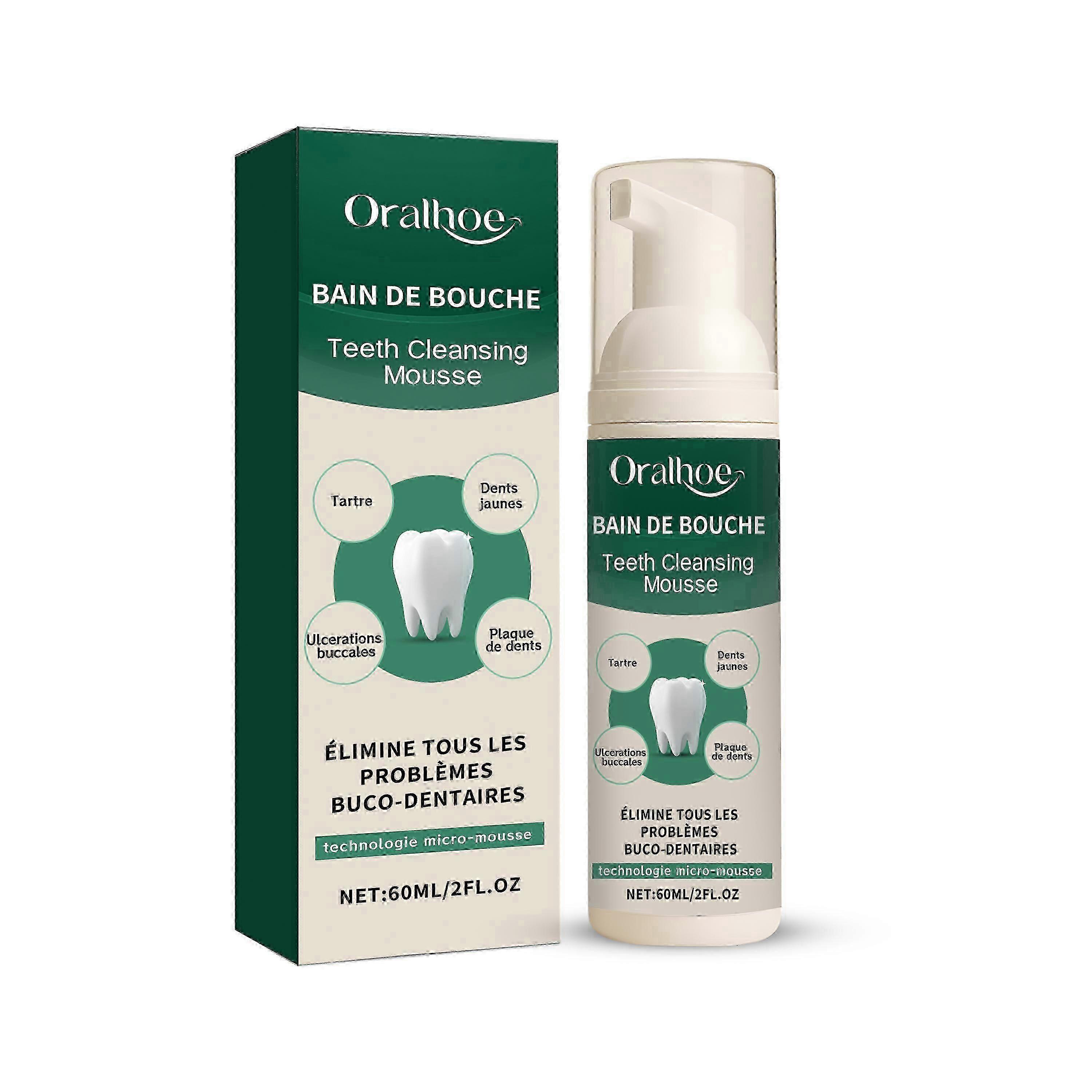 Features 1. **Natural Ingredients**: Formulated with tea tree oil and aloe vera, our mousse provides a natural solution for fresh breath and effective cleaning, ensuring a healthier mouth without harsh chemicals. 2. **Deep Cleaning Action**: This teeth cleaning mousse penetrates deep to remove plaque and food particles, promoting optimal oral hygiene and a brighter smile. 3. **Convenient Application**: Simply squeeze onto your toothbrush and brush for 2-3 minutes. Easy to use twice daily, making it a perfect addition to your oral care routine. 4. **Fresh Breath Formula**: Specifically designed to combat bad breath, our mousse leaves your mouth feeling fresh and clean, boosting your confidence throughout the day. 5. **Travel-Friendly Size**: At 60ml, this compact mousse is perfect for on-the-go use, fitting easily in your bag or suitcase for fresh breath anytime, anywhere. Our teeth cleaning mousse is carefully formulated with tea tree oil and aloe vera leaf extract. Designed specifically for naturally refreshing breath and improving bad breath. The usage method is extremely convenient: Squeeze an appropriate amount of dental gel onto the toothbrush. Brush your teeth for 2 to 3 minutes and then rinse your mouth with clean water. Use it once in the morning and once in the evening every day. And it can make teeth cleaner and improve the overall oral experience.
