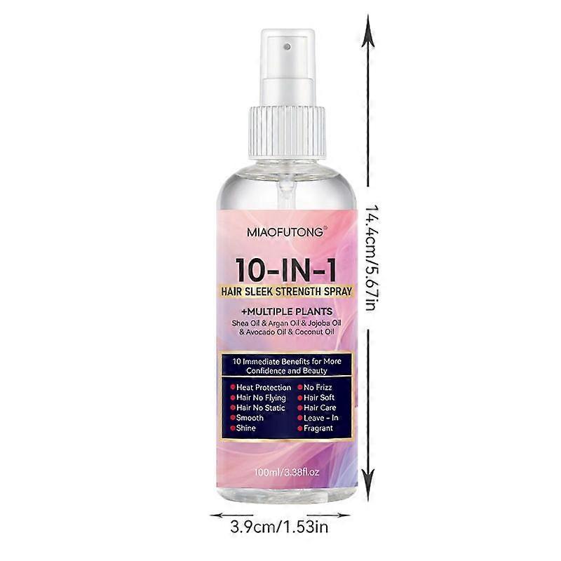 10-in-1 Leave-In Hair Care Spray Sleek Strength Formula with Shea & Argan Oil Moisturizing & Smoothing for Dry, Frizzy Hair 100ml Portable Heat Pro