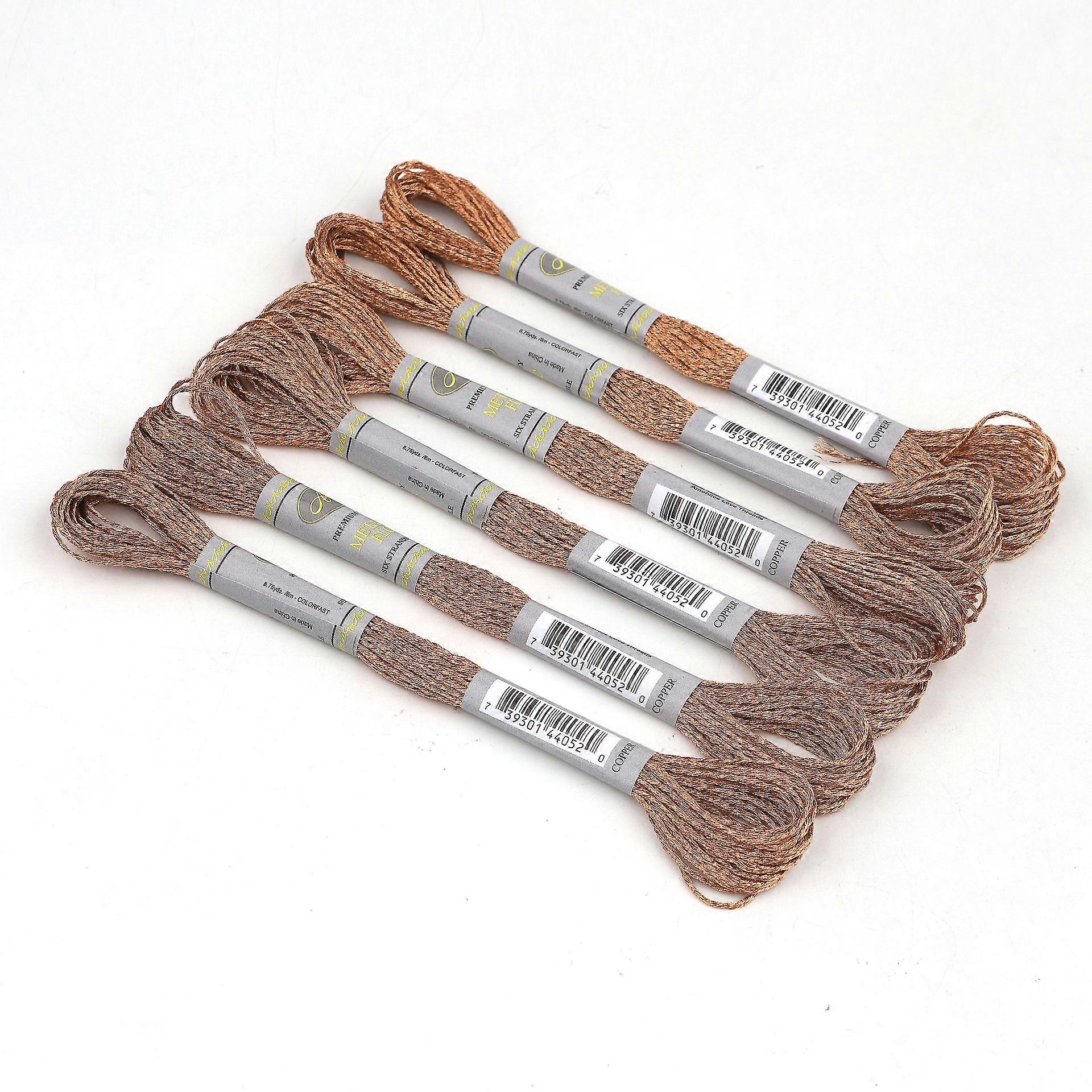 6 Piece Set Light Effect High Sheen Metallic Embroidery Floss Cross Stitch Thread 8 Meters Long 6 Strands Skein Pemiunm Quality