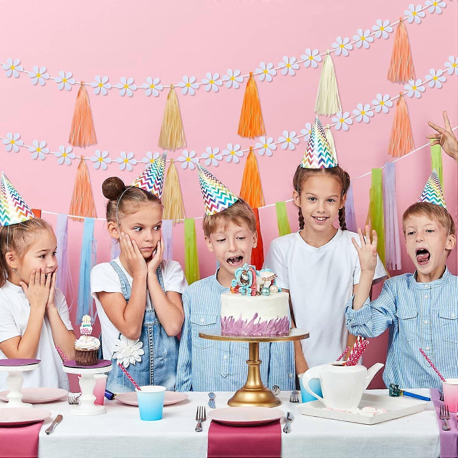 2 Pcs Daisy Groovy Boho Garland with 20 Pcs Paper Tassels, Groovy Party Decorations Hippie Daisy Felt Banner Artificial Daisy