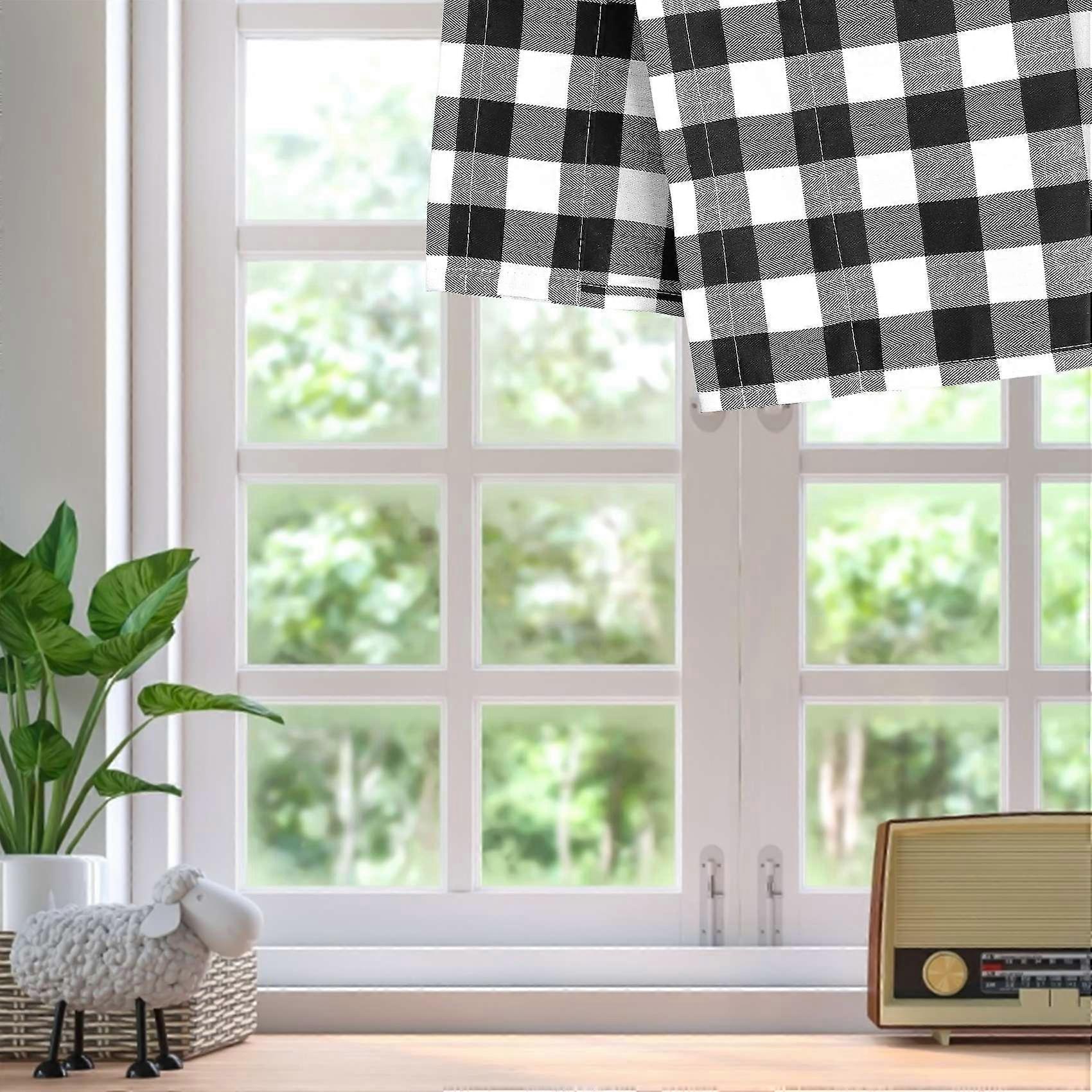 YWDZ-Buffalo Plaid Valances For Kitchen Farmhouse Check Plaid Valances For Window Treatment Decor (Black And White)