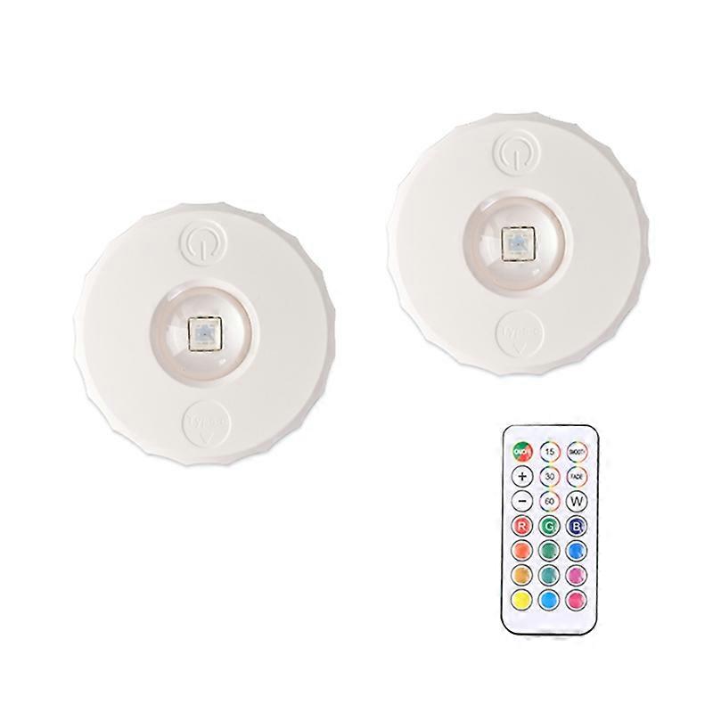 YWDZ-Remote-Control Puck Lights LED RGB Dimmable Under Cabinet Lighting Wireless Hill Sensing Spotlight For Wine Cabinet 2PCS