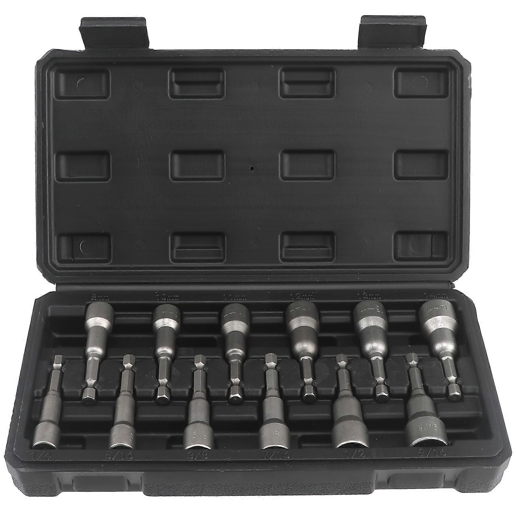 12/16 Piece Magnetic Nut Driver Set - Premium Impact Power Hex Nut Driver Drill Bit Master Kit, SAE & Metric