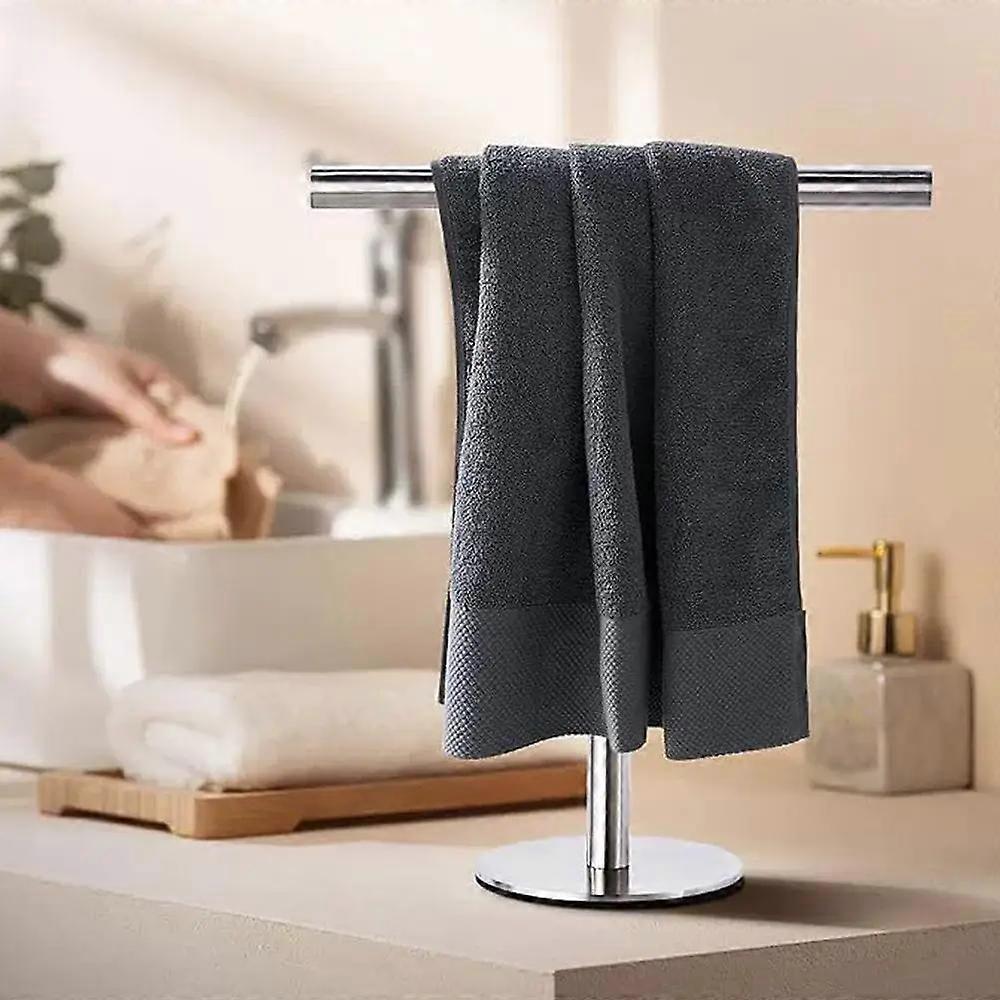 Bathroom Hand Towel Holder Stand T-Shape Stainless Steel Towel Bar Rack Bathroom Kitchen Vanity Countertop Storage Organizer