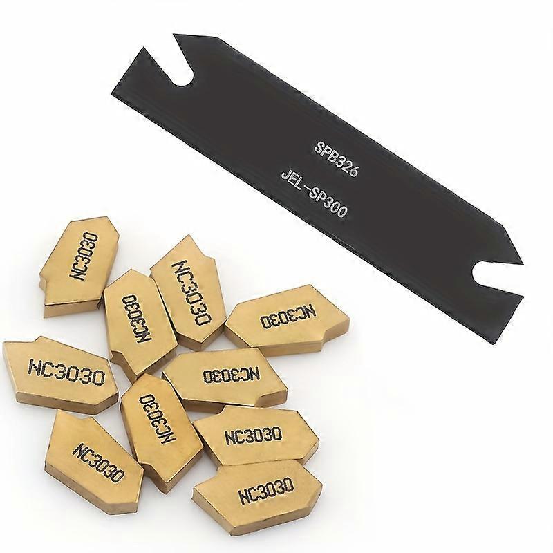 11PCS Lathe Grooving Cutting Tools Kit, SPB326 Parting Cut-Off Tool Boring Bars with 10pcs GTN-3 NC3030 Carbide Inserts