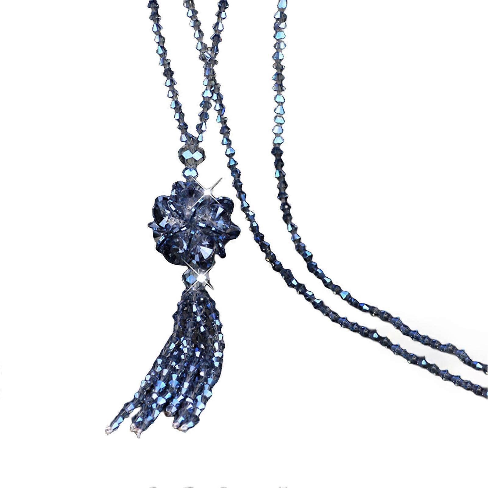 Faux Crystal Necklace Knotted Beaded Long Tassel Shiny All Match Good Gloss Women