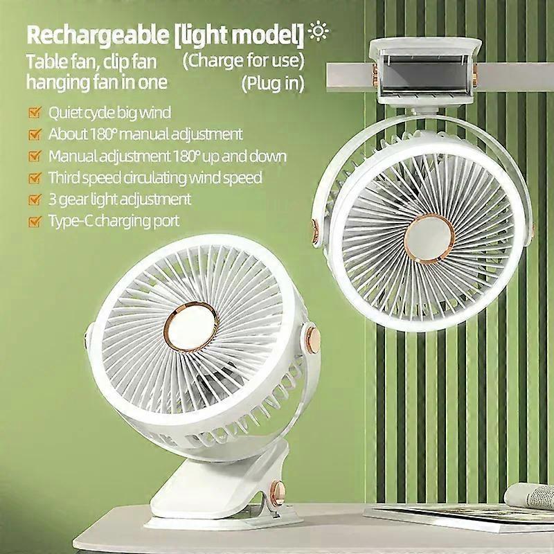 Rechargeable Desktop and Clip on LED Light Fan with Circulating Air Fan, 2000mAh, Portable Wireless Mobile Ceiling Fan