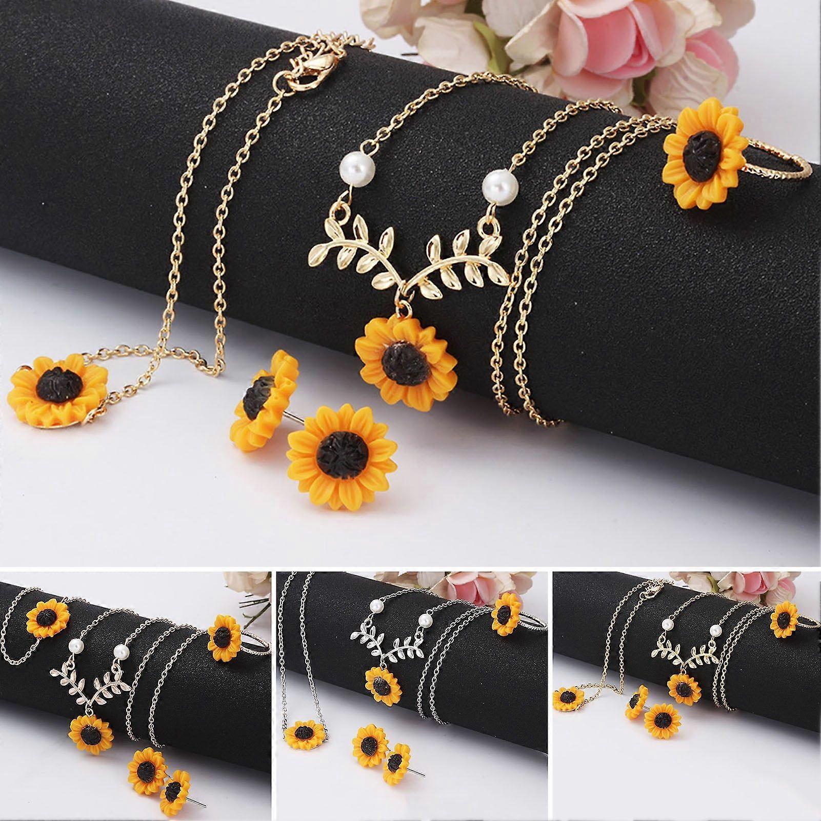 4Pcs/Set Women Jewelry Set Sunflower Shape Vivid Stainless Leaf Decor Women