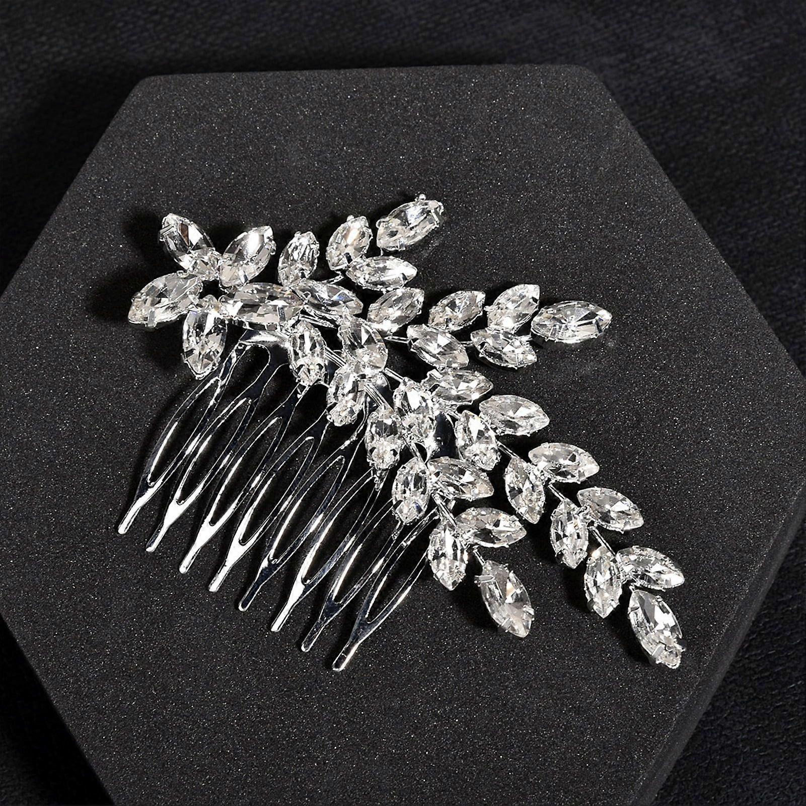Bride Hair Side Comb Clips Tiara Luxurious Messy Bun Maker with Glass Diamond for Bridesma