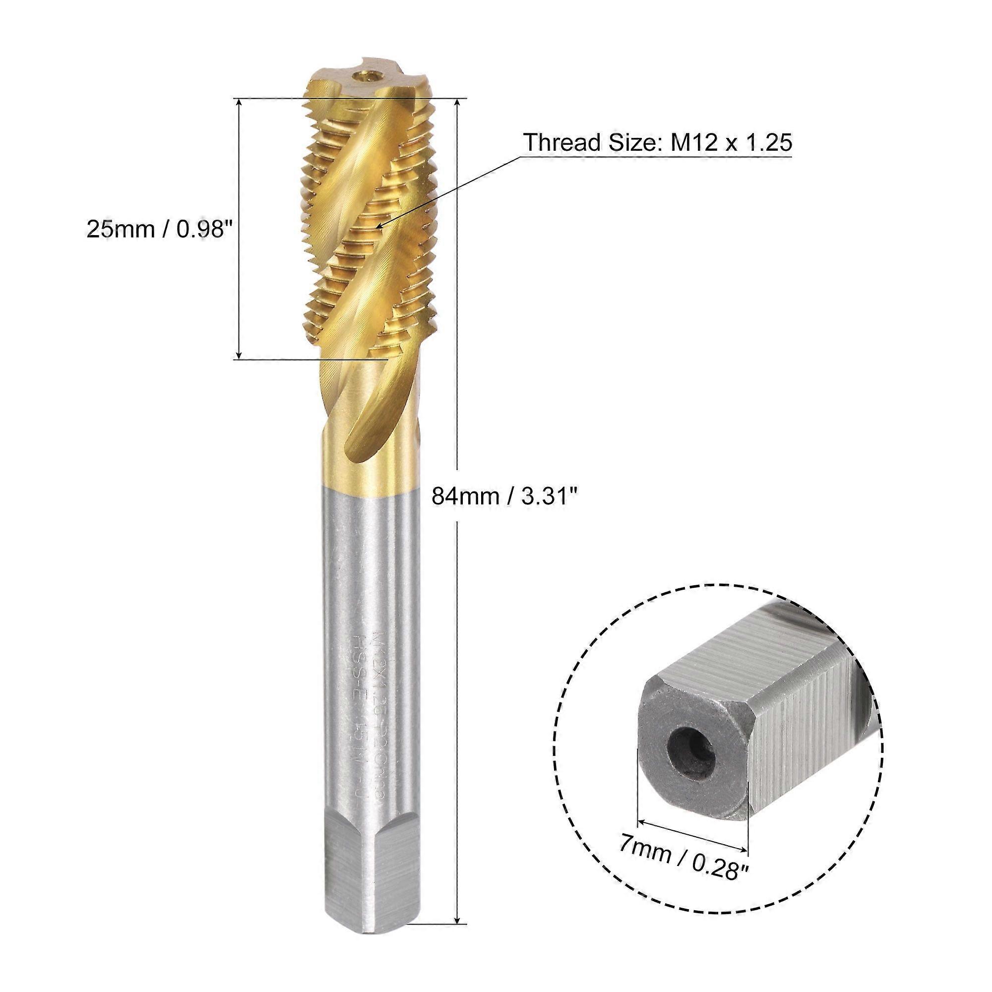 M12 x 1.25 High Speed Steel Machine 4 Spiral Flutes Thread Tap Titanium Plated