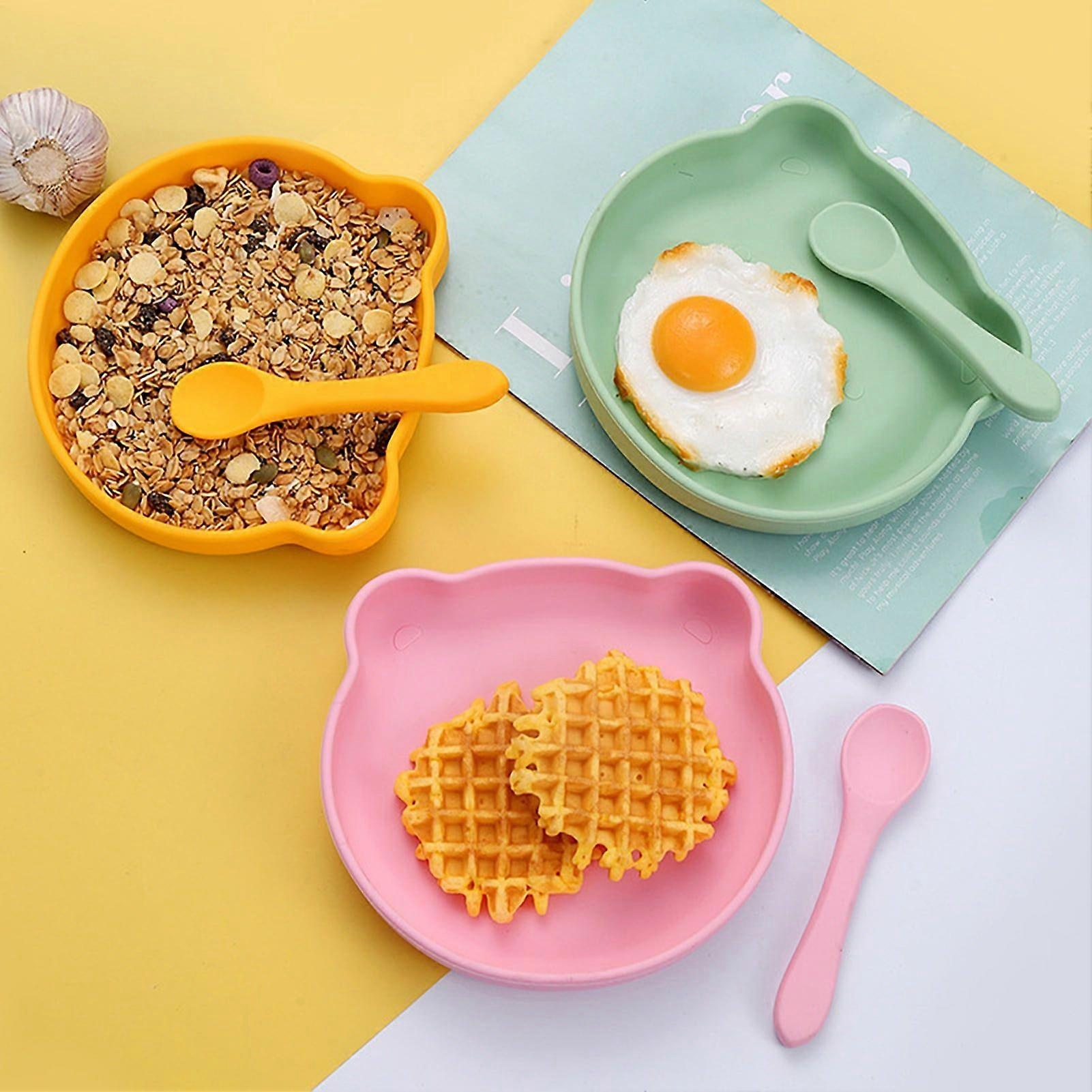 Baby Suction Plate with Spoon Strong Suction Cup Anti-overturn Food Grade