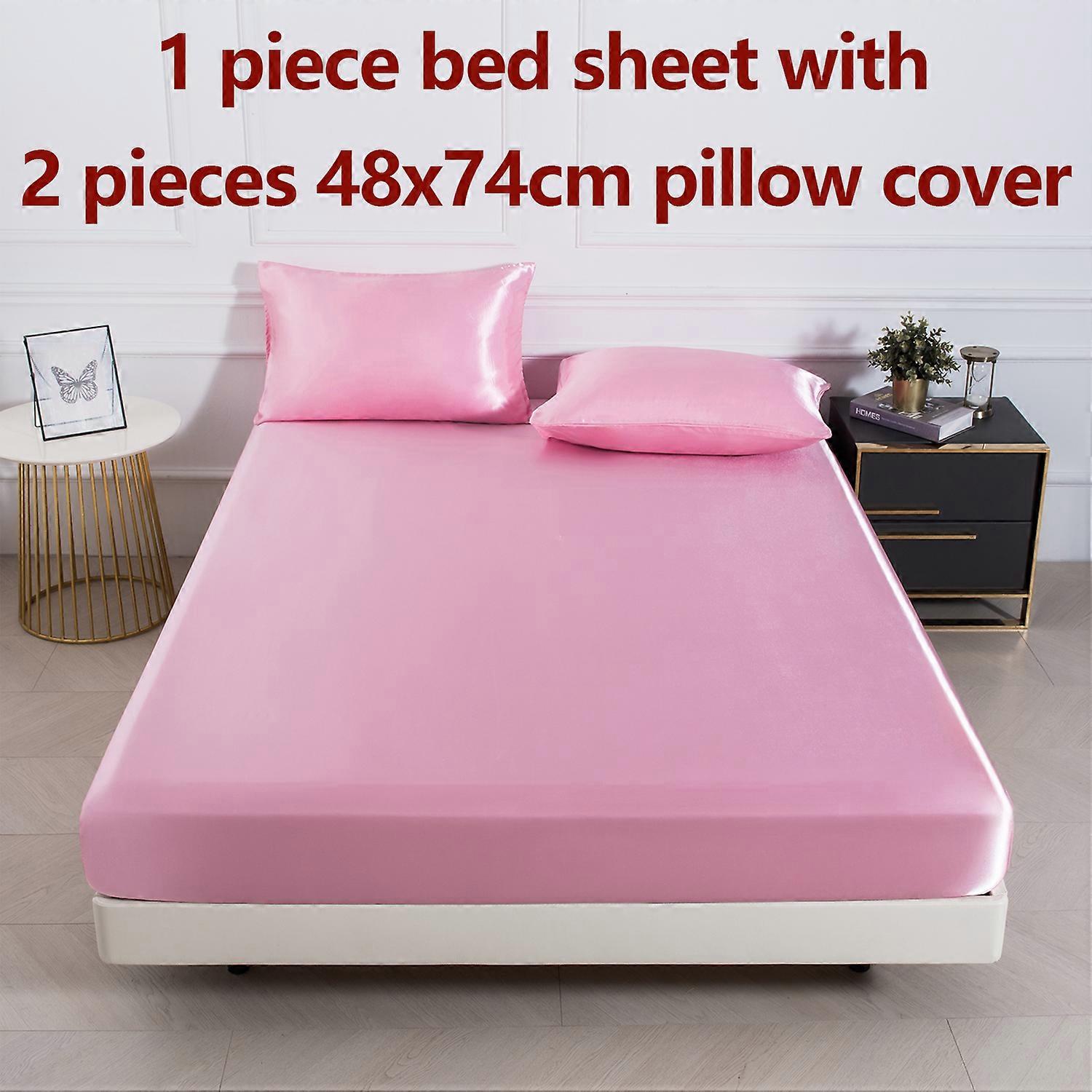 3pc Solid Color Fitted Sheet Set 1 bed sheet with 2 pillow cover Satin Fabric Soft Comfortable Breathble Bedding Set for Bedroom