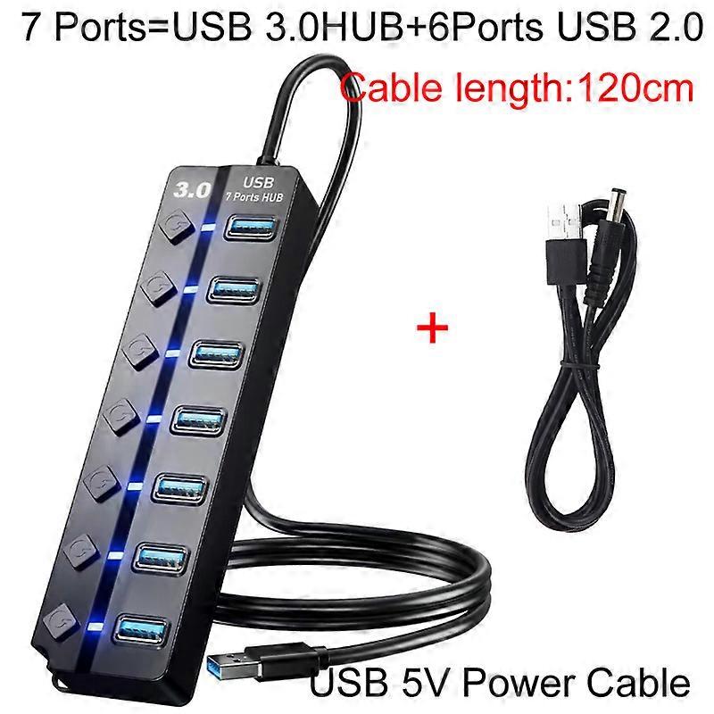 120CM USB 3.0 Power Adapter 4/7 Port Multi Splitter Hub USB Hub Expander Switch 30CM Docking Stations AC 5V 2A Power DC CABLE+