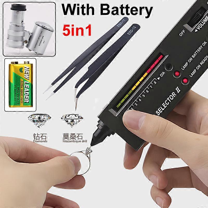 Diamond Tester High Accuracy Diamond Tester Pen Jewelry Professional Diamond Selector Kit+battery+60x magnifying glass+Tweezers