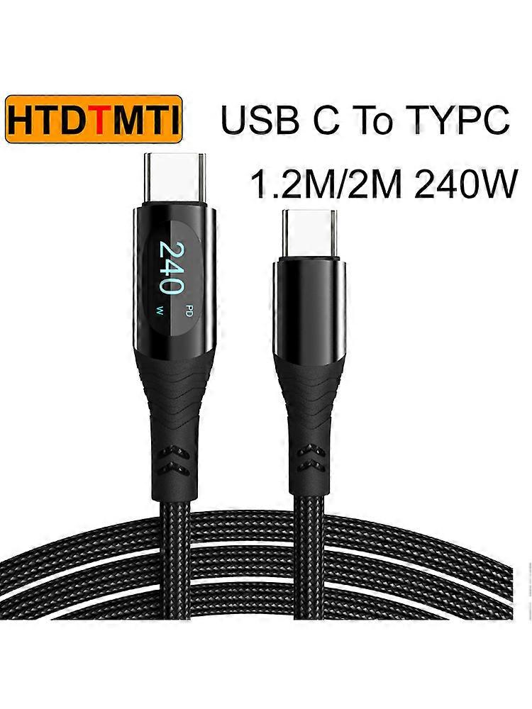 1.2M/2M 66W/100W/240W Nylon USB A Type C Cable PD 3.1 LED Fast Charging Charger Wire For Macbook Pro Xiaomi Samsung Laptop Cord
