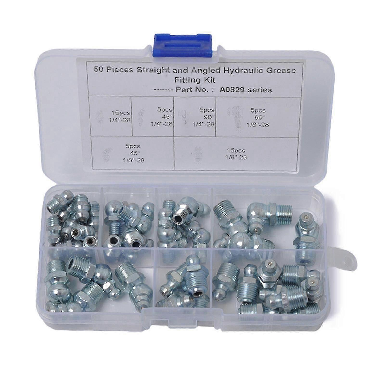 50Pcs Hydraulic Grease Fittings: Straight, 45, 90 Stainless Steel Zerk Nipples 1/8 & 1/4in Thread